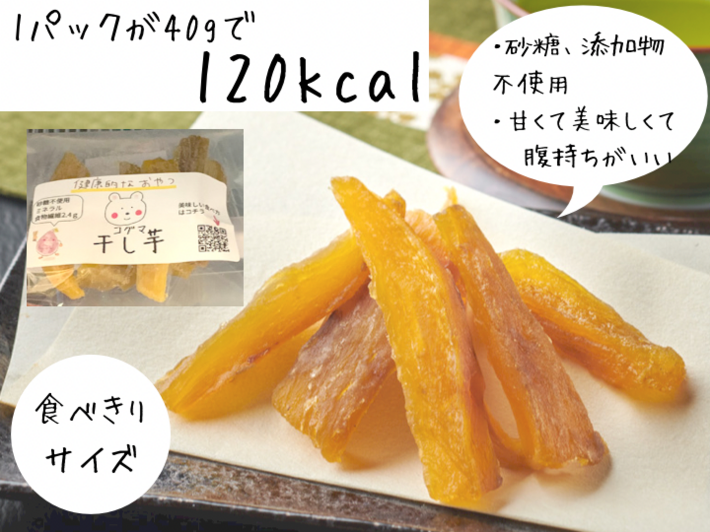 - 1パックあたり120kcal。食べきりサイズ