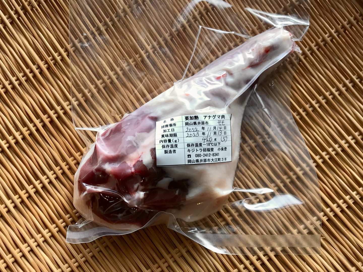 希少✨「アナグマ肉【モモ(骨付き)特A】420gブロック」221114-5 フレンチで人気のジビエ!