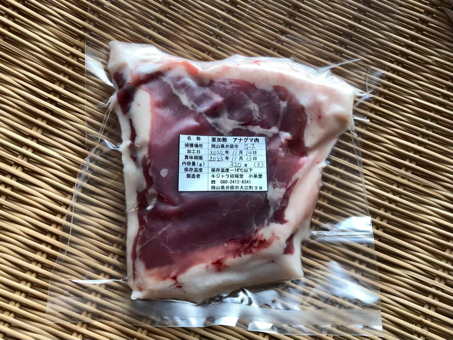 希少✨「アナグマ肉【ロース特A】320gブロック」221114-3 フレンチで人気のジビエ!