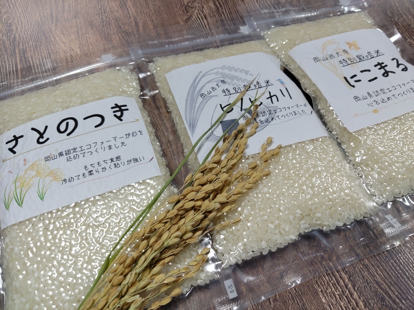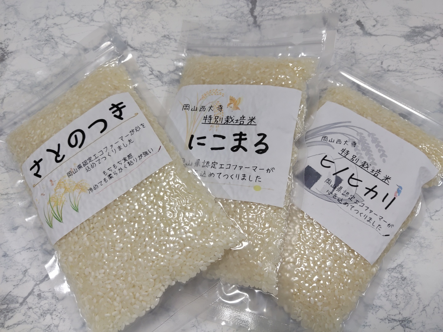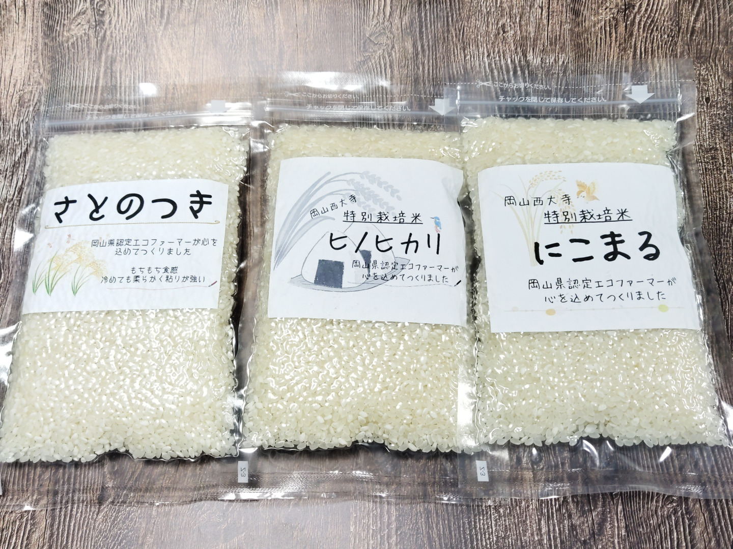 毎日の楽しみに🎶お米食べ比べセット(3品種精米各300g)(にこまる、ヒノヒカリ、さとのつき)令和4年産