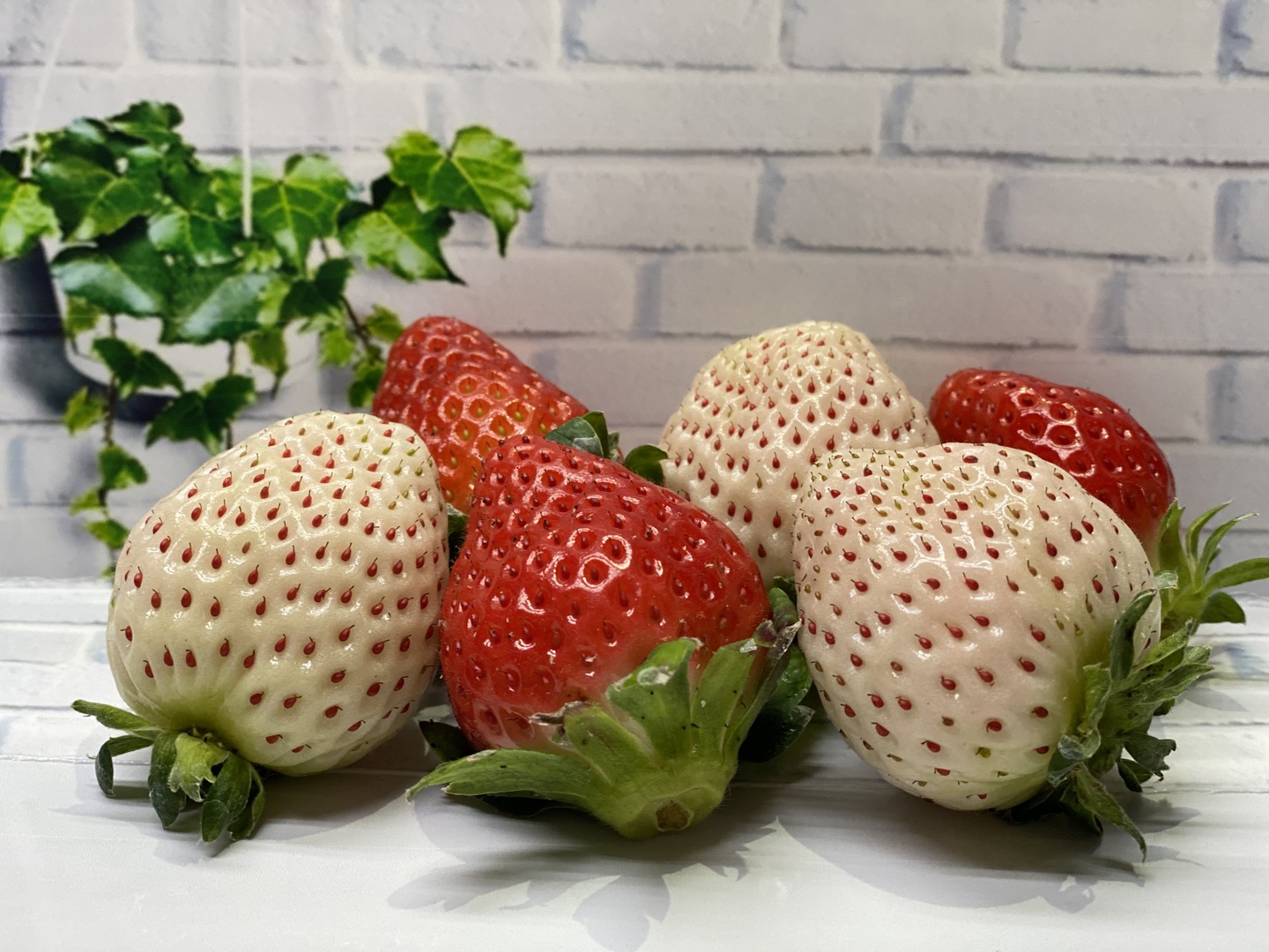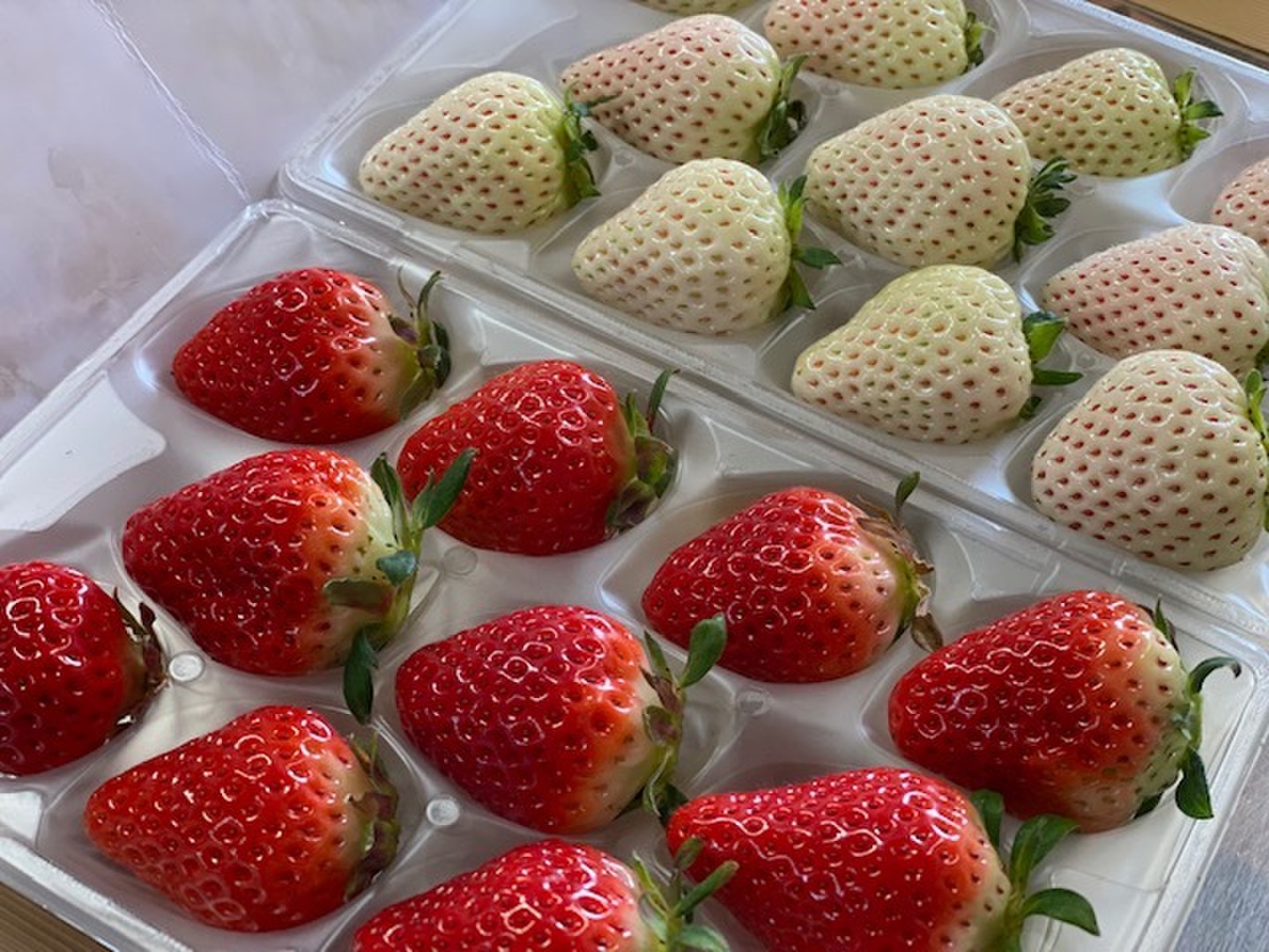 赤いちご、白いちごの食べ比べでお楽しみください!!