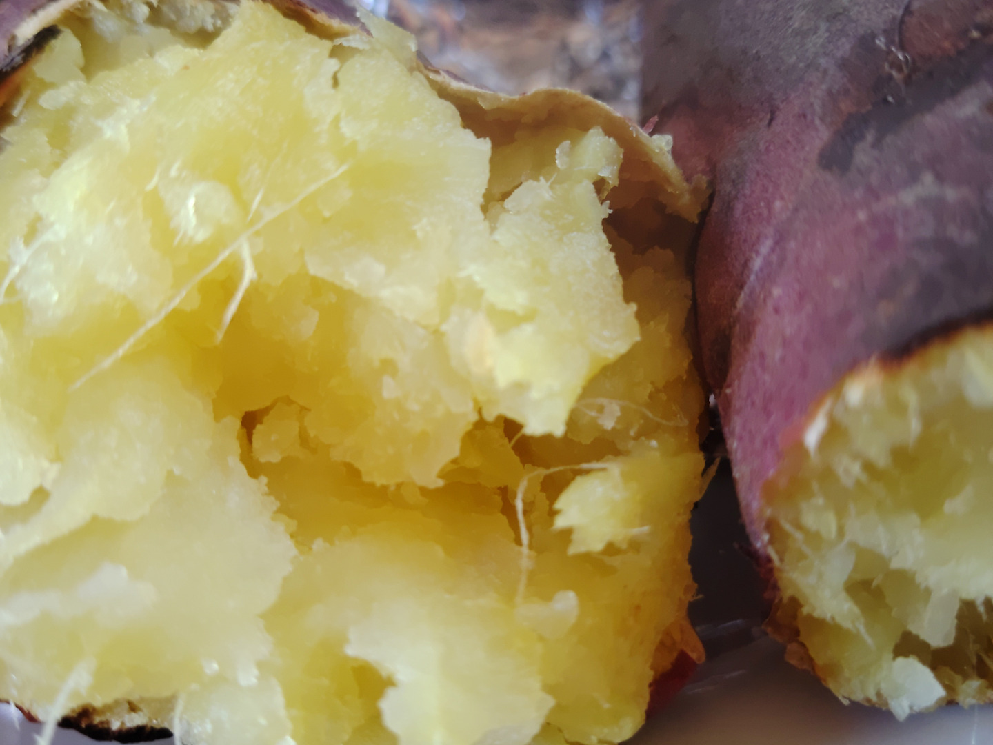 べにはるかはしっとり系の甘みの豊かな品種です。その甘さも後味がすっきりしていて食べ飽きません。魚焼きグリル弱火でじっくり時間をかけて焼き芋にするのがオススメです。アルミホイルでふんわり包み蒸気を逃がし時々外して焦げ目をつければ、程よく水分の抜けた🍠になります。オーブンを使用した場合も同じくじっくり時間をかけて加熱するのが甘い焼き芋のコツです。