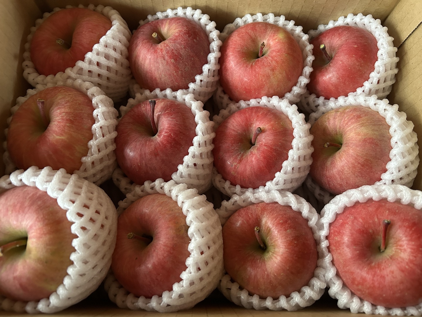 小玉な半面、香りの強さと蜜入りでギュッと詰まったひと玉はずっしりと重く、小玉でも他を圧倒しているリンゴです。