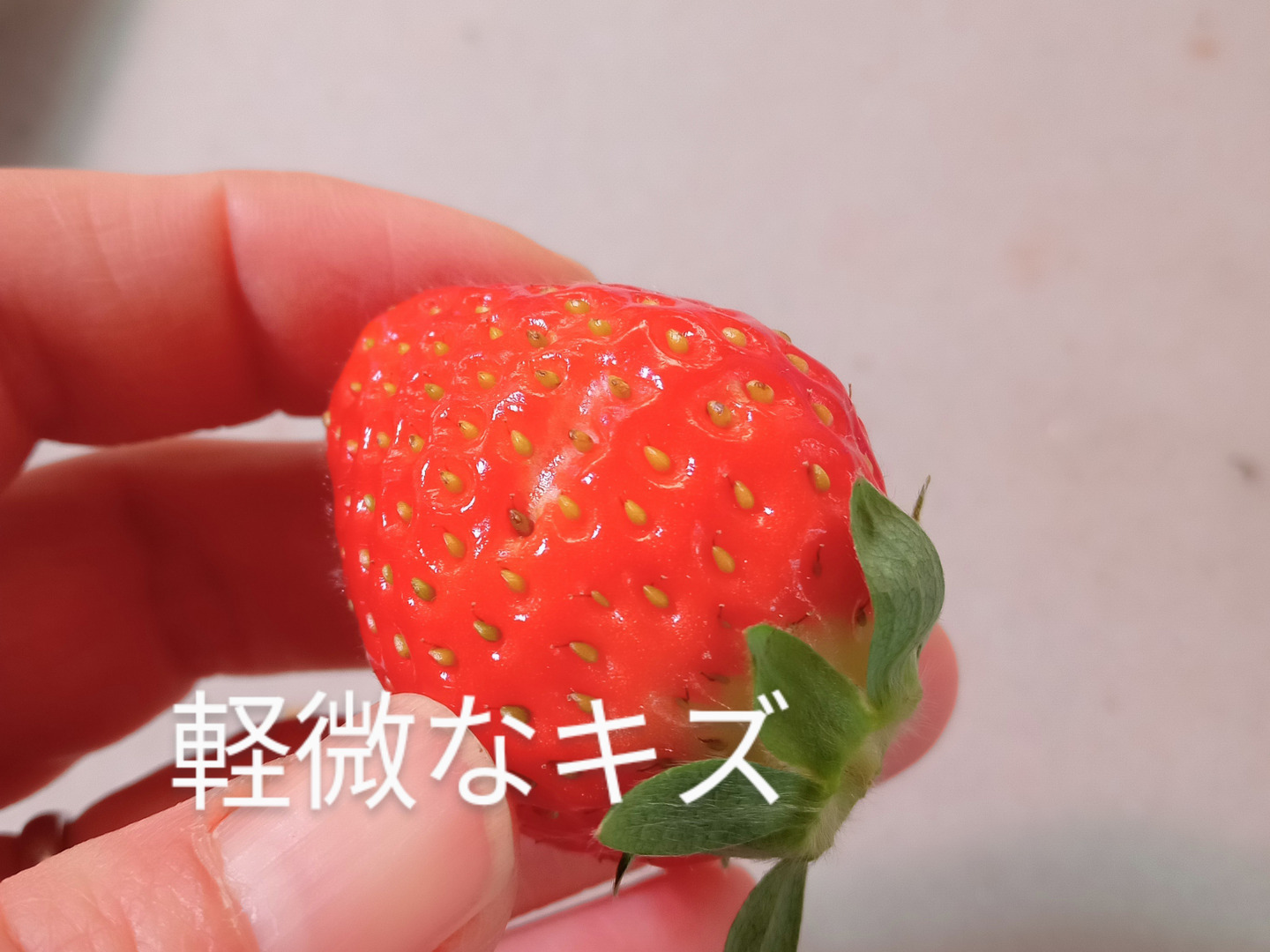 いちごはとてもデリケートなため、取り扱いには十分注意しておりますが、配送中などに一部「圧し」や「剥け」が出る場合があることをご了承ください。