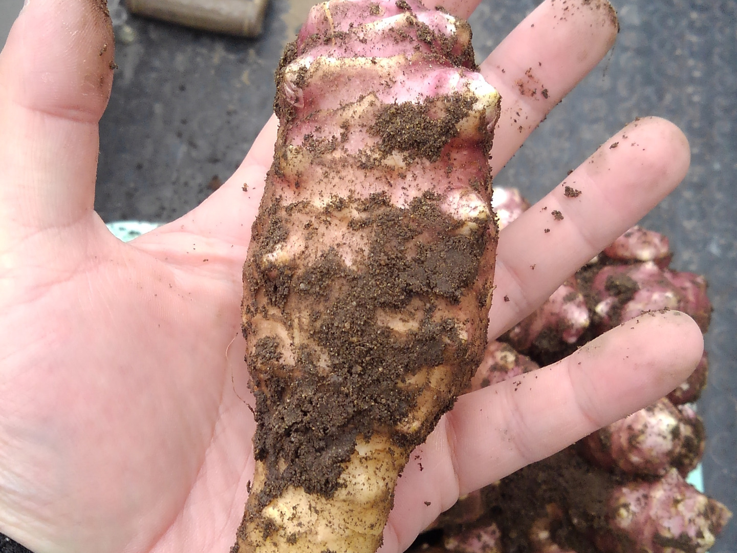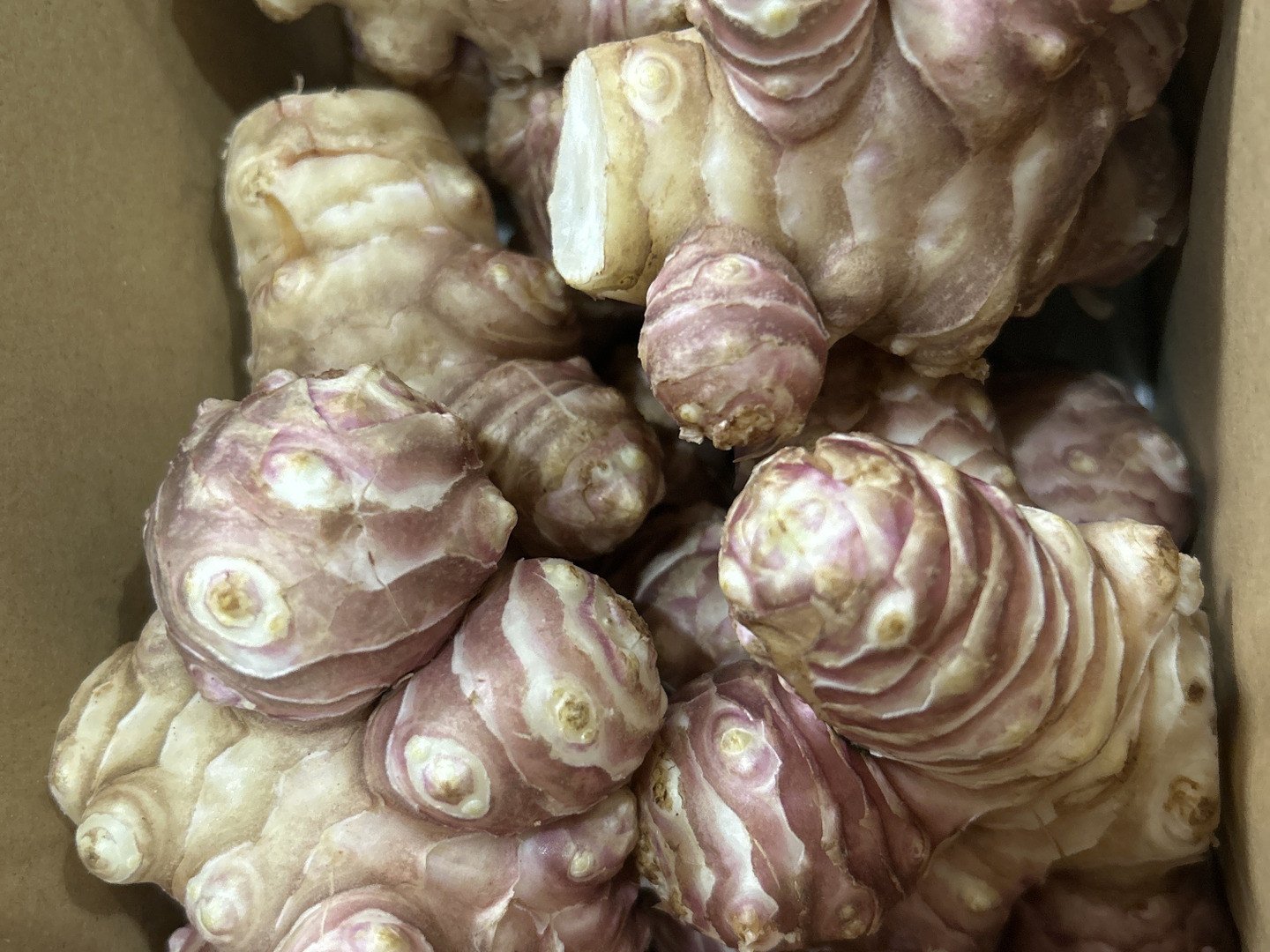 白色のキクイモより多くイヌリンを含むと言われている「紅キクイモ」です。