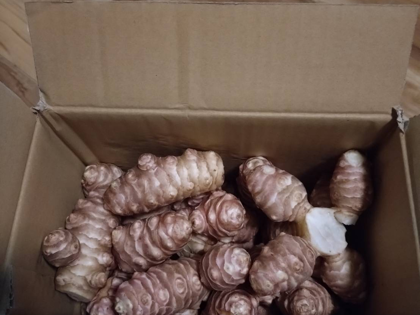 キクイモ1個当たりのサイズが大きくなるように工夫して栽培しております。