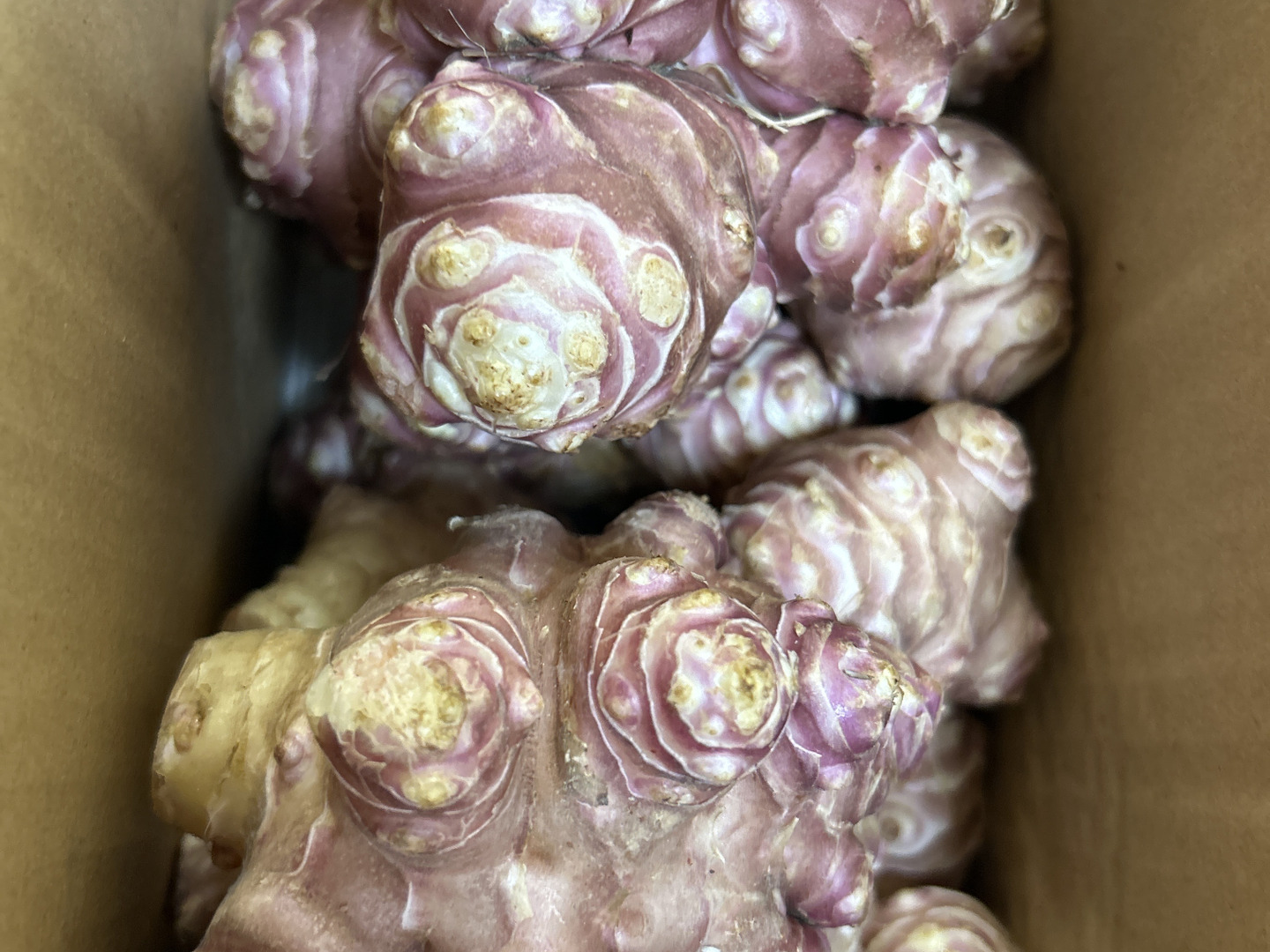 白色のキクイモより多くイヌリンを含むと言われている「紅キクイモ」です。