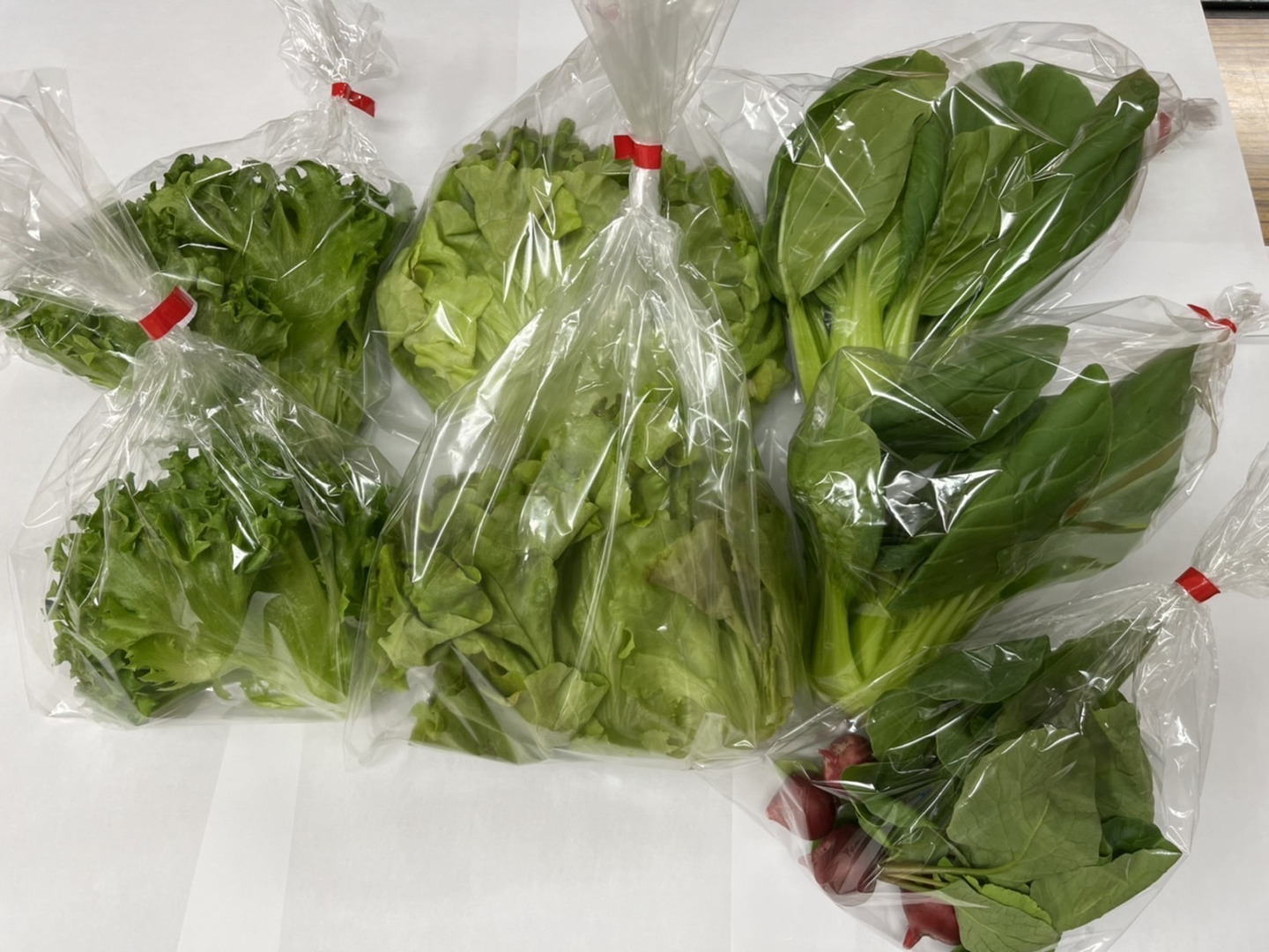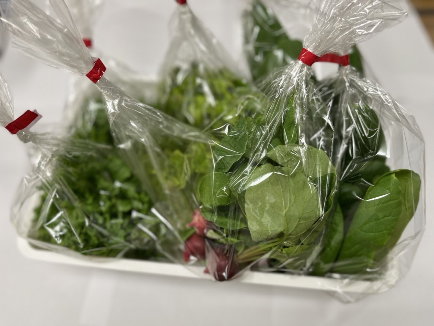 フリルレタス100g前後×2袋、サンチュ100g前後×2袋、ミニ青梗菜100g前後×2袋、おまかせ60g前後
