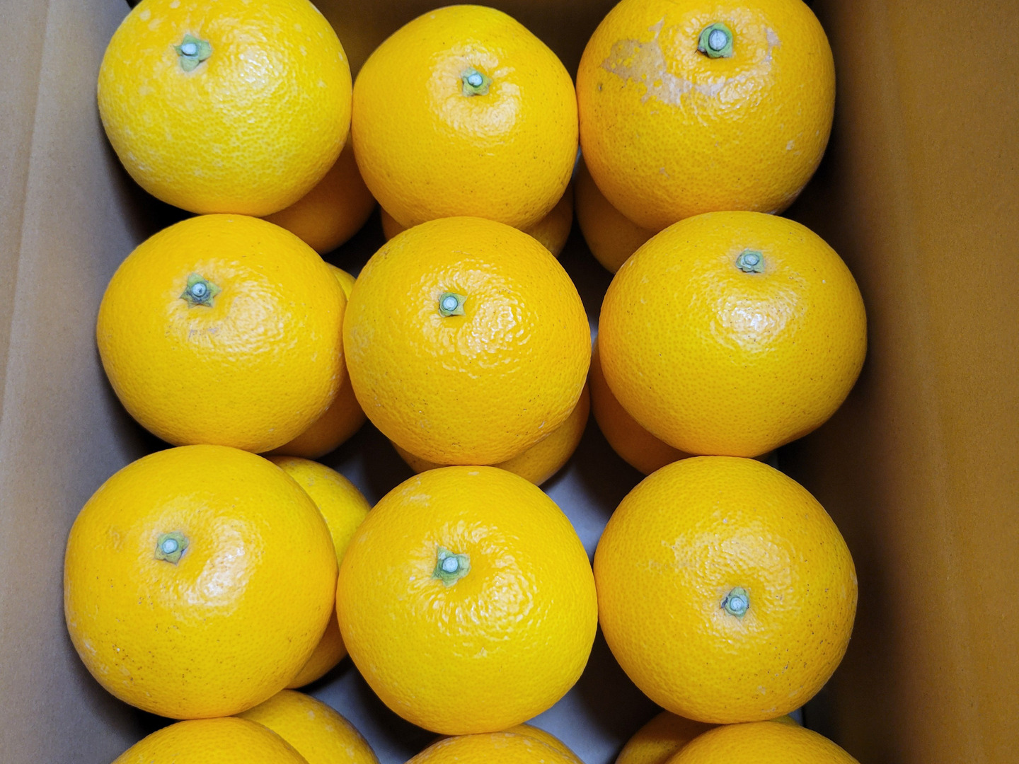 八朔は主に11月から1月にかけて収穫しますが、紀の川市産八朔は出荷まで2か月程低温貯蔵庫で貯蔵します。なぜなら、八朔に含まれる糖質とクエン酸の含有量は収穫時をピークにゆっくりと分解が進み減少していきますが、糖質に比べてクエン酸が早く分解されますので、貯蔵することにより程よく酸味が抑えられたまろやかな味になります。 また、八朔はおいしいだけではありません。まるごと1個食べれば成人が1日に必要とするビタミンCが摂取できますし、苦味成分の「ナリンギン」は高血圧の予防、美容やダイエットに効果があるとされています。特に、果皮に含まれる注目の成分「オーラプテン」は他の果物より八朔に多く含まれています。