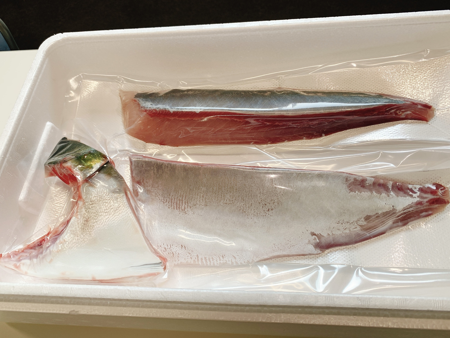 黒糖ぶり半身分(処理前4.5kg前後のブリ) 柵スキンレス2パック・カマ1パック