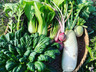 昼間の暖かい太陽でエネルギーをいっぱい蓄え、朝晩のキュンっとした寒さで甘味を増した、新鮮なことはもちろん、旨味タップリの野菜を5〜7種類お届けします。