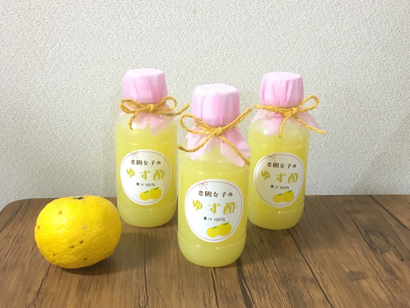 【R6年】【さわやか♪レモンのようなゆず酢】農園女子のゆず姫セット(ゆず酢 200㎖×3本) 19年農薬・化学肥料不使用 無添加 100%果汁