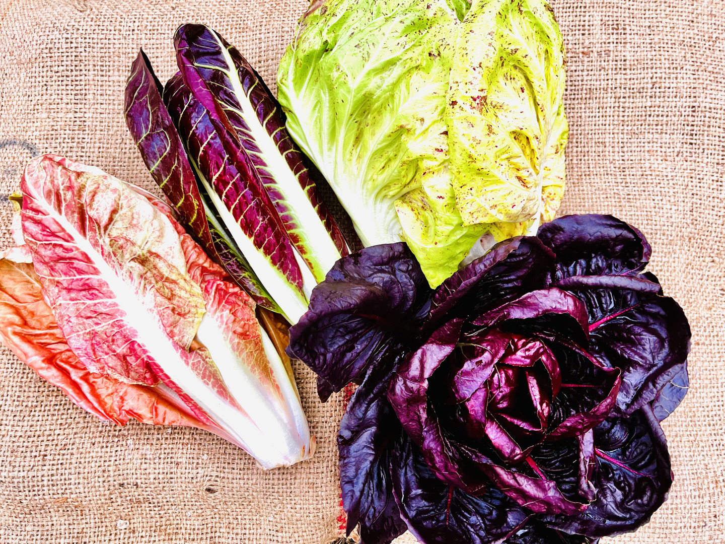 リーフレタスのように広がったエンダイブ、白菜の芯のようなアンディーブ、赤キャベツのようなトレビスなどなど・・・