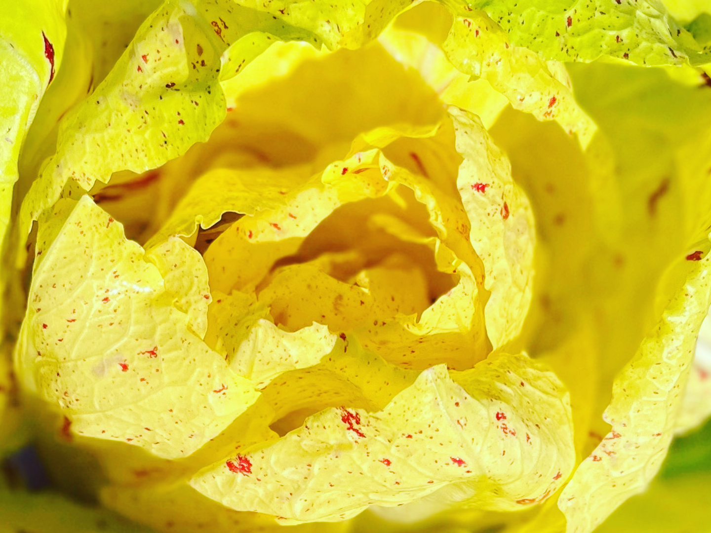 ライトグリーンやクリーム色の葉に赤い斑点の入っており、チコリの女王とも言わます。サラダはもちろんサンドイッチなどにも。とにかく美しいの一言。