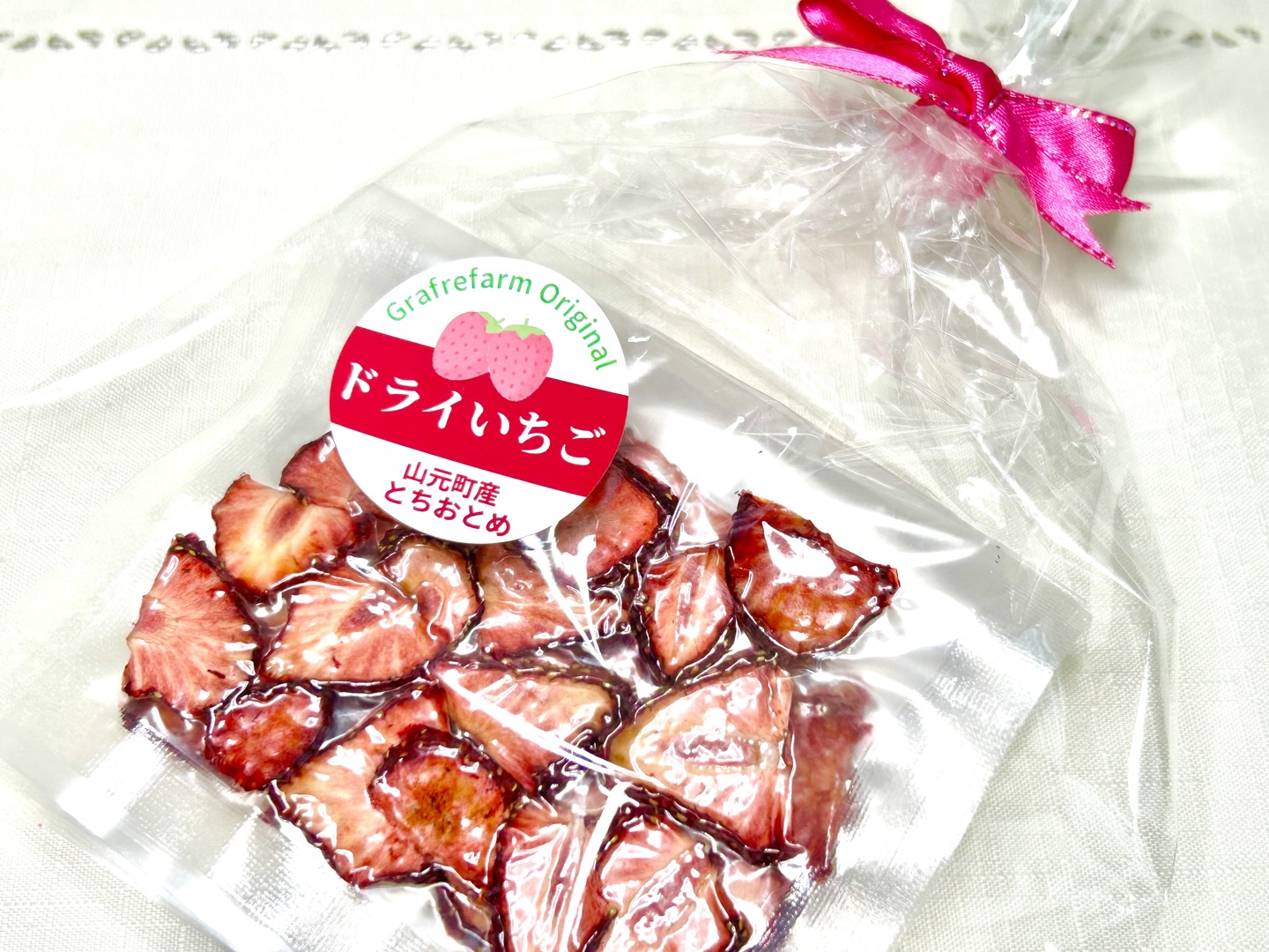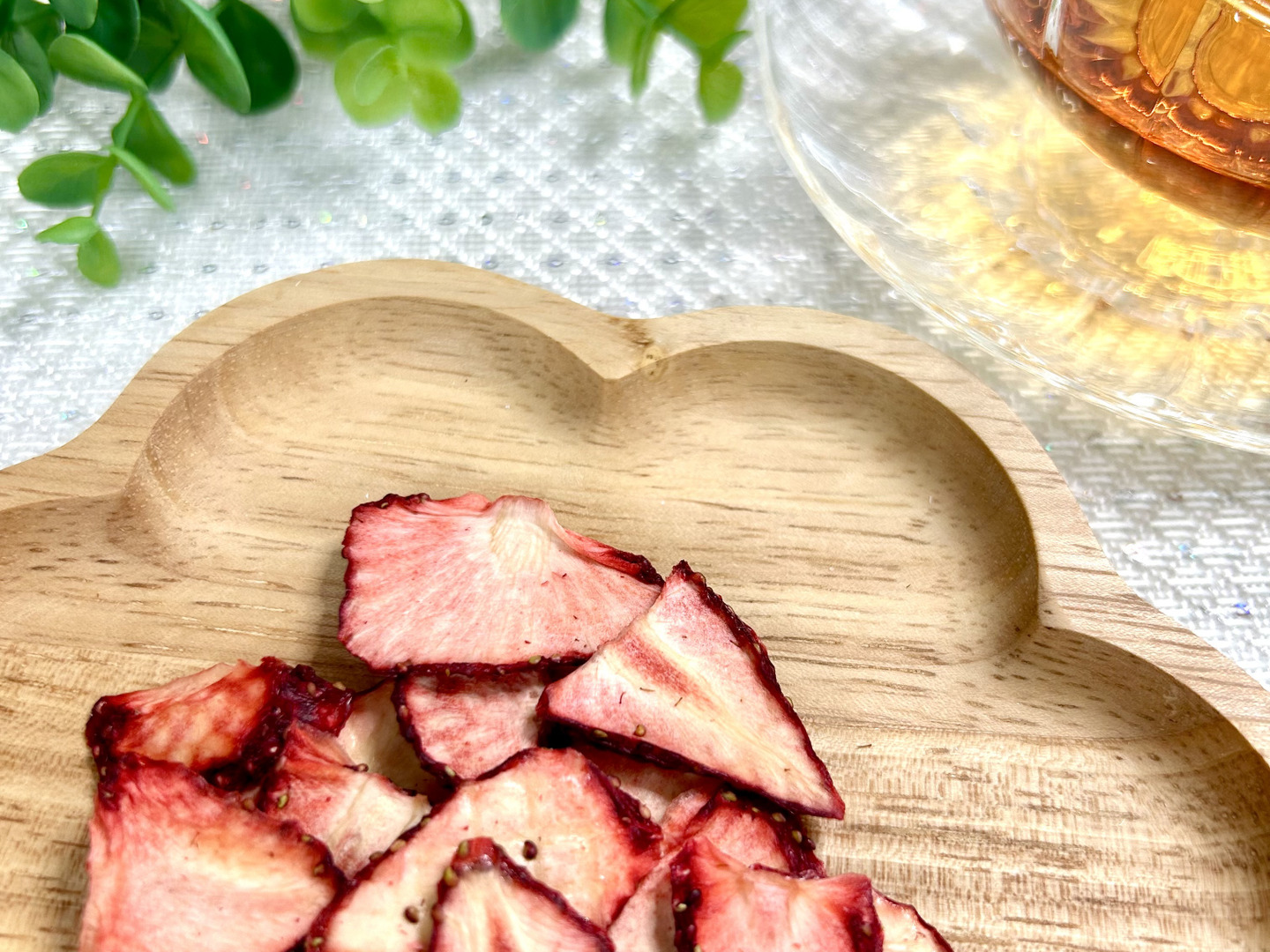 低温で長時間ゆっくり乾燥させることで、「とちおとめ」の旨味をギュッと閉じ込めた濃厚なドライいちごが完成しました。