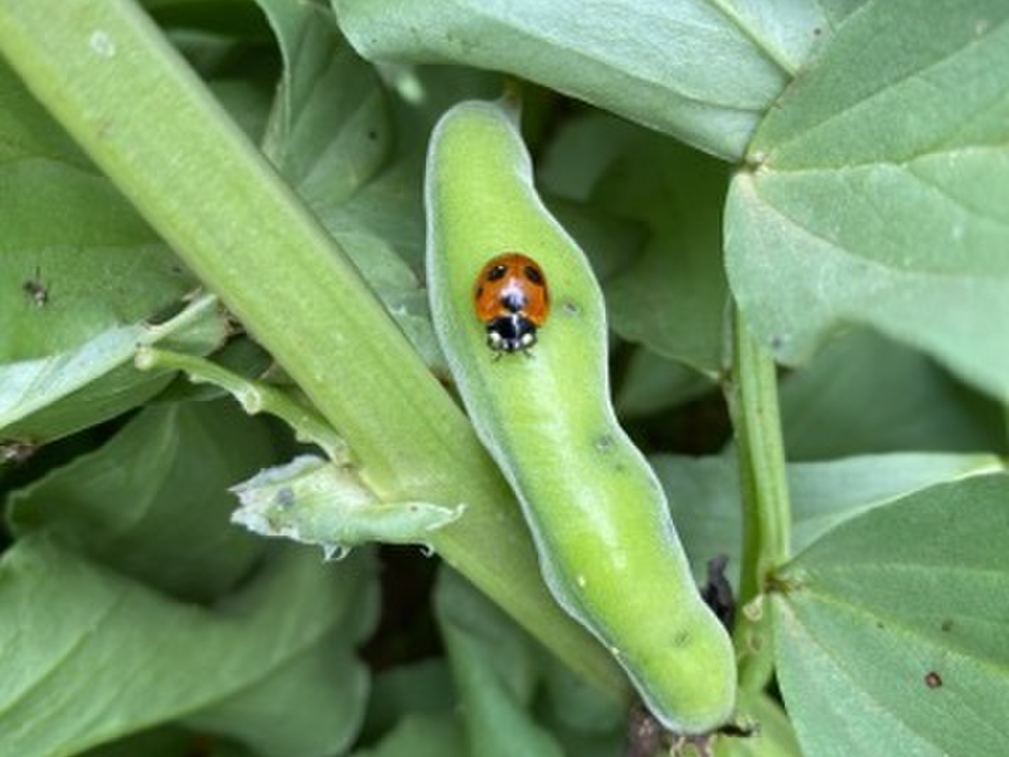 ソラマメ は、てんとうむしが、アブラムシから守ってくれています。