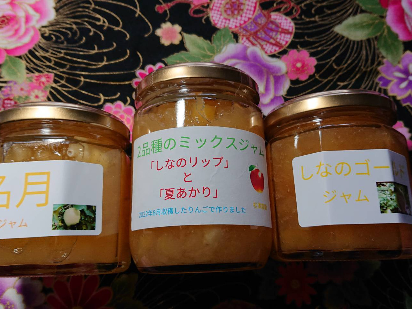 10月に収穫した「シナノゴールドを使ったジャム」と「名月を使ったジャム」と「しなのリップと夏あかりのミックスジャム」の3点セットです。