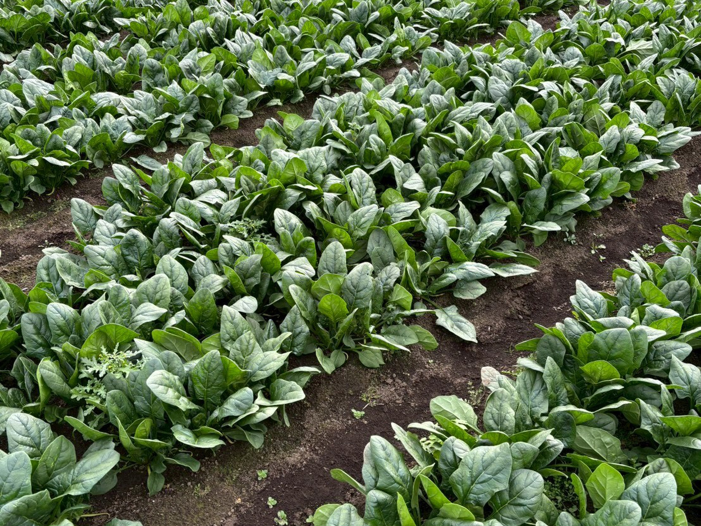 米ぬか、籾殻、緑肥、鶏糞、豚糞などの有機質をたっぷり畑に入れています。有機質たっぷりの畑で育ったほうれん草は、葉が肉厚でとても健康に育ちます。