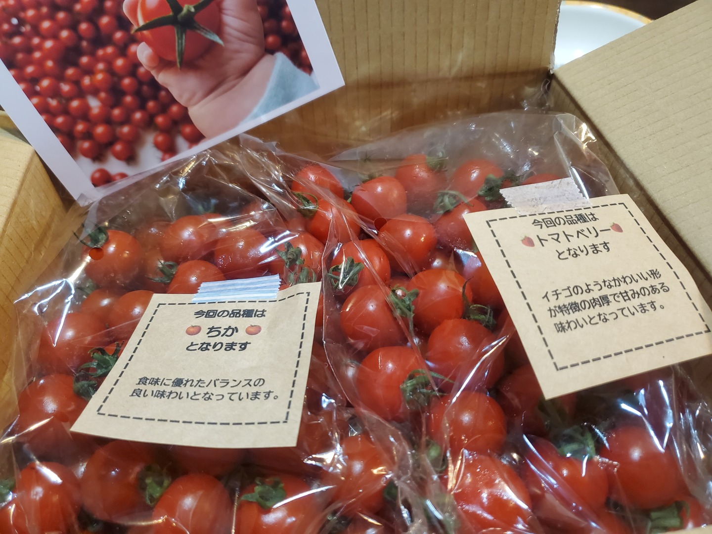 750g(1.5kg)以上のベリーとミニトマトを各1つずつを1箱にて発送します。