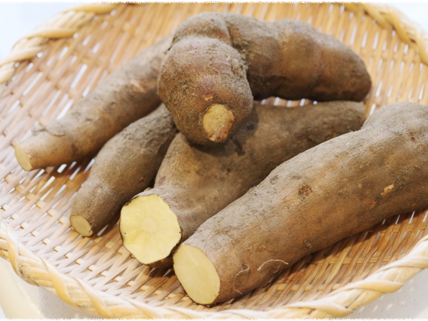 #※ヤーコンの性質上、割れてひびが入ったり、写真4枚目のように、黒ずんでいる箇所がある場合があります。皮は通常タワシなどで擦ると剥けますが、このような場所は包丁で厚く剥いてください。その際はその分多めにお送りしますのでご了承ください。また、切った芋もありますことをご了承ください。