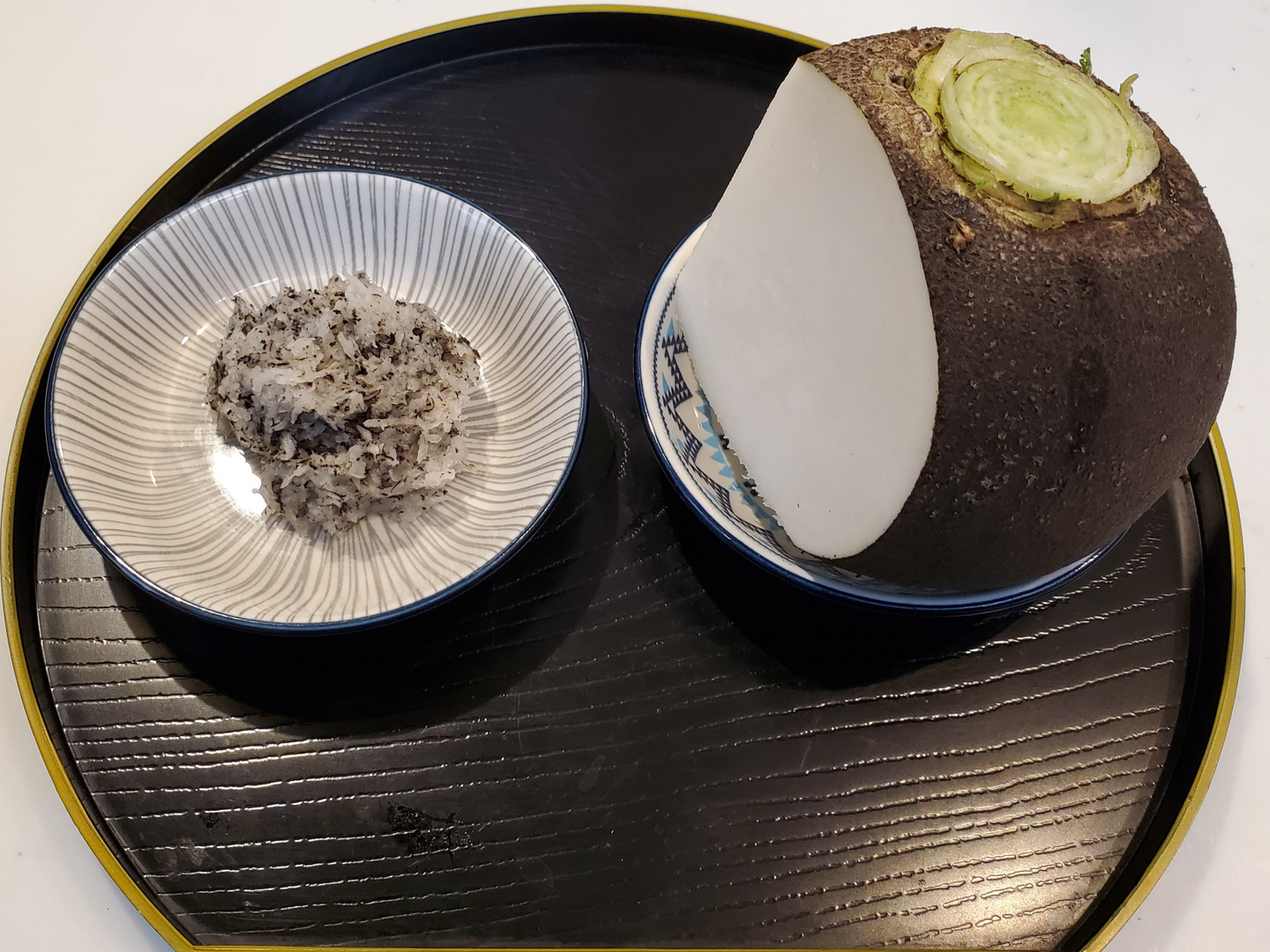 黒丸大根は、名前の通り黒くて丸い形が特徴的で、中は白く肉質は硬めの大根です。