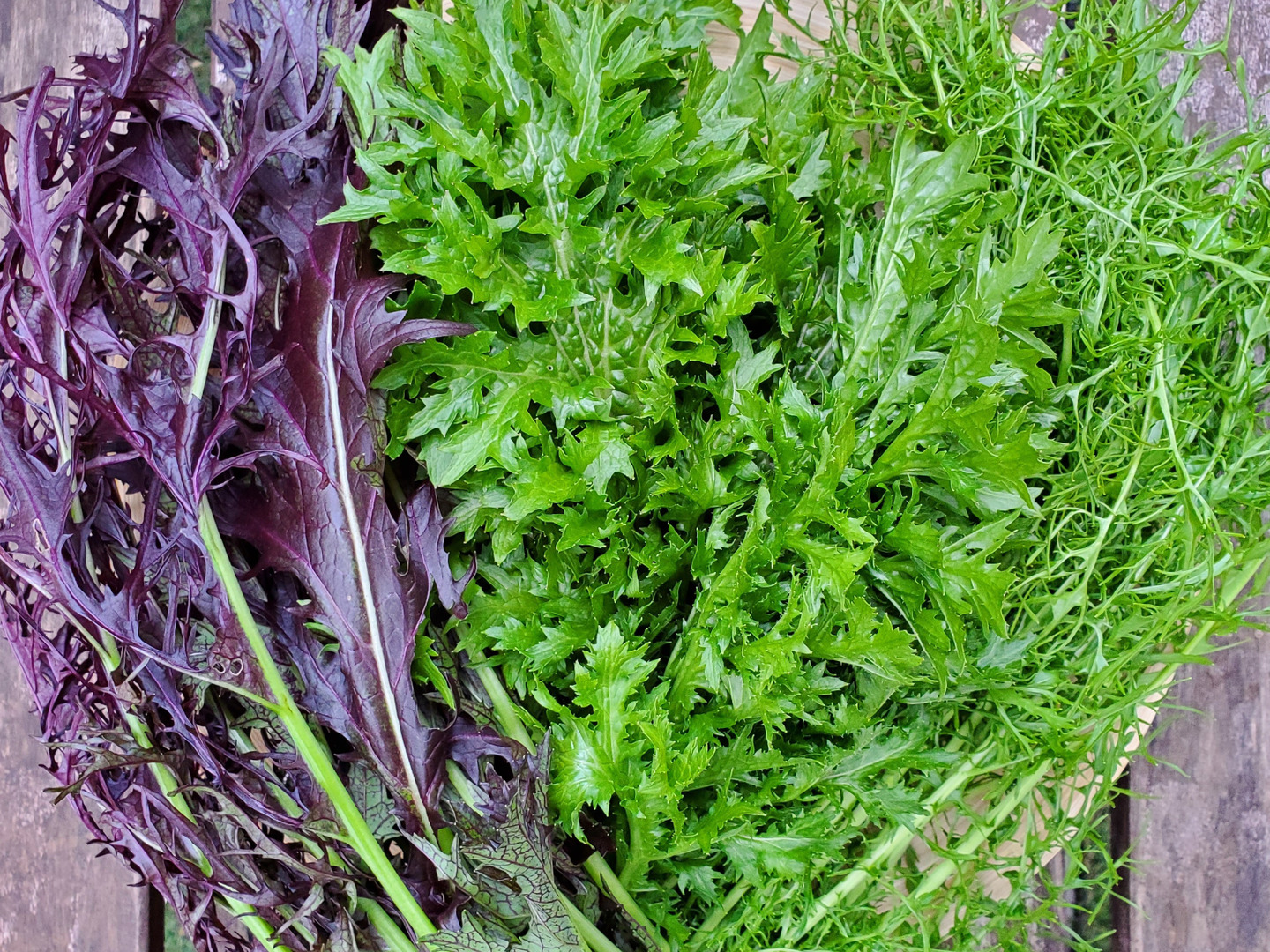 からし菜は、緑と赤の2色が入ります。