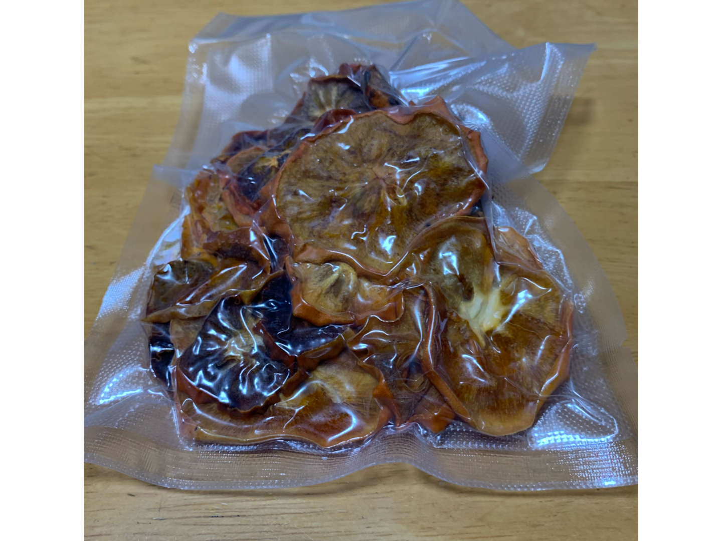 甘柿(2種類)を輪切りし乾燥させることで、そのままの味&自然の甘さが濃縮された【ドライ柿チップス】が出来上がりました。