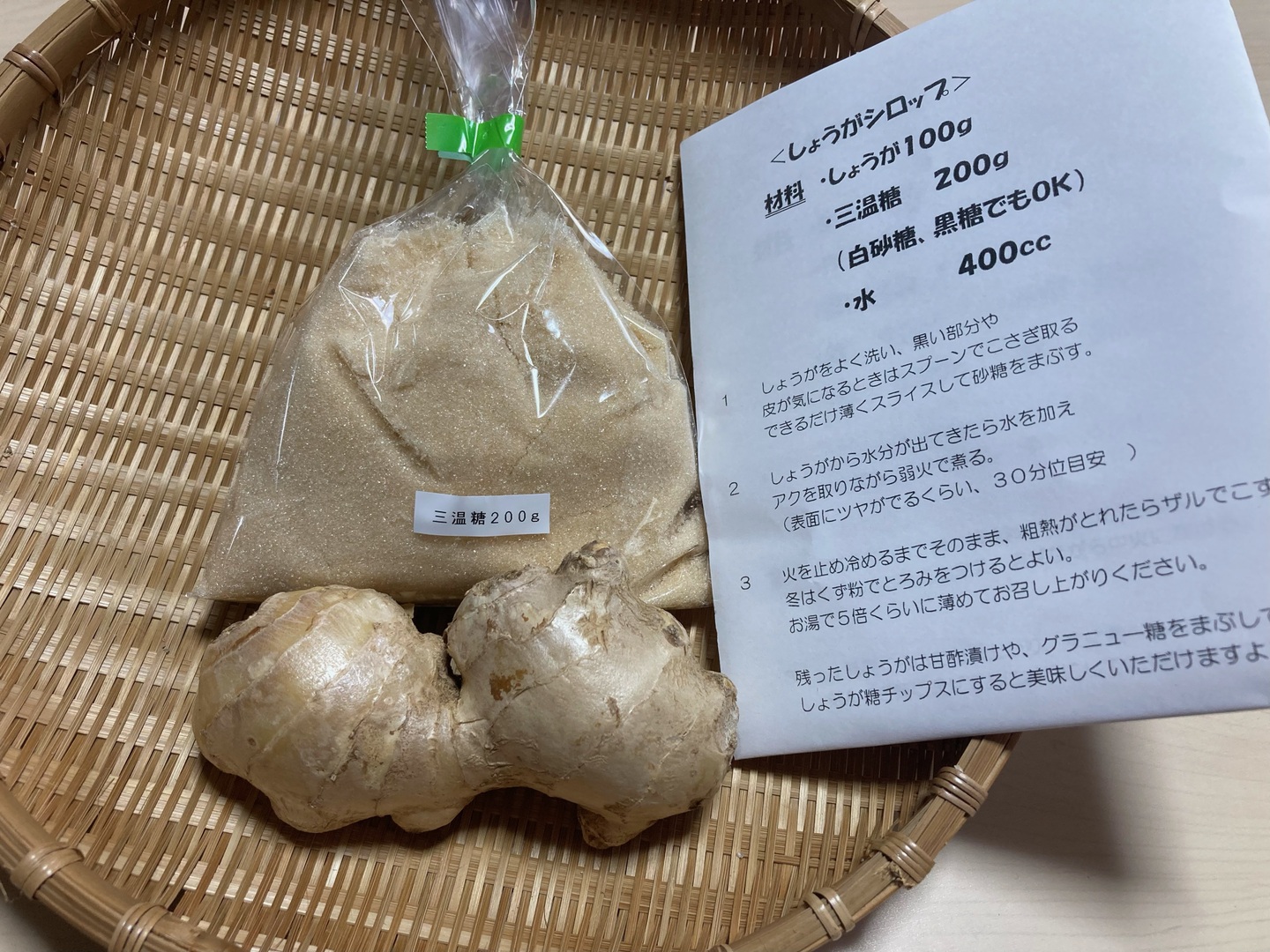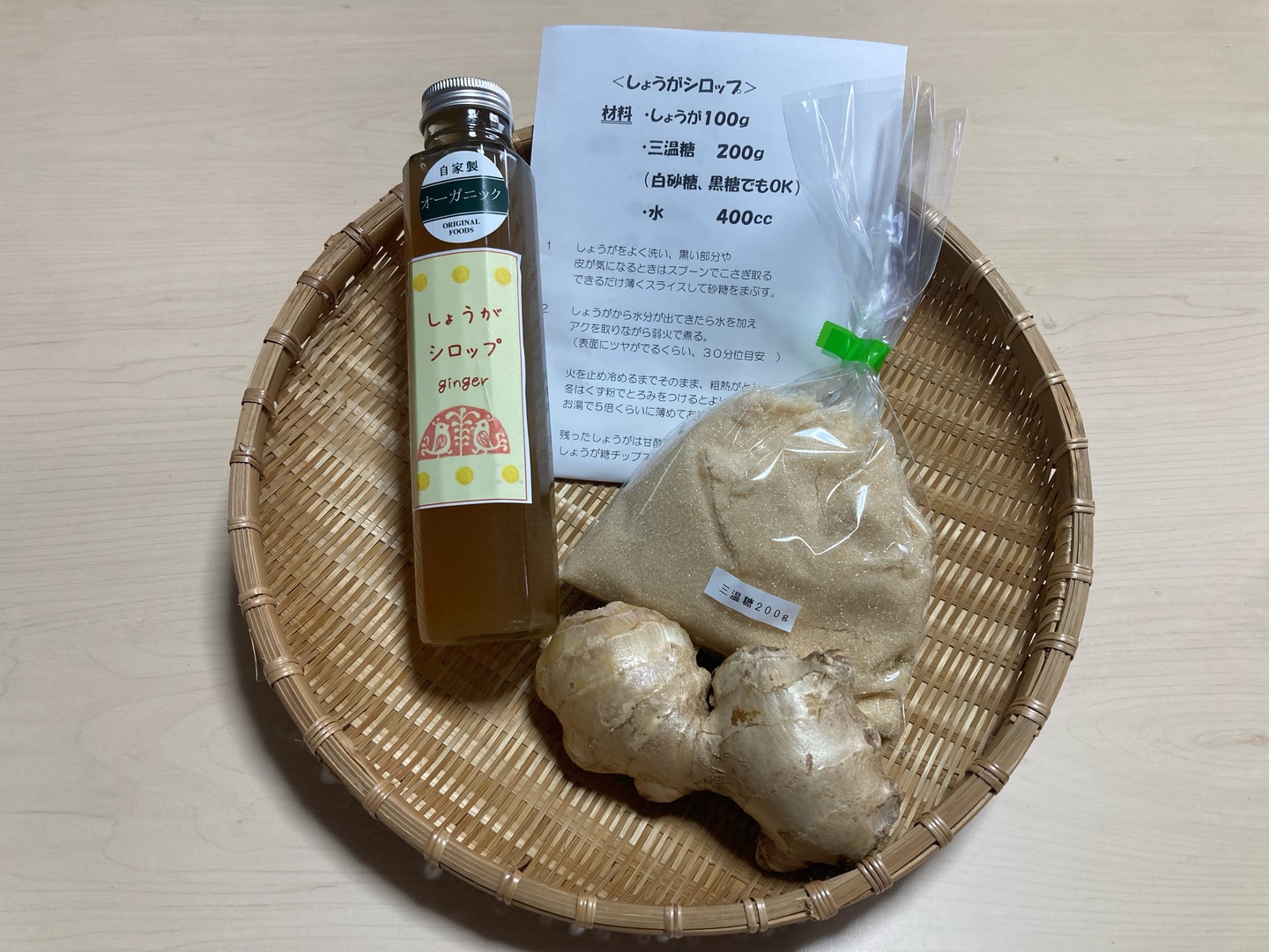 生姜シロップ作成キット(生姜100g・三温糖200g・レシピ)✙ 生姜シロップ170ml