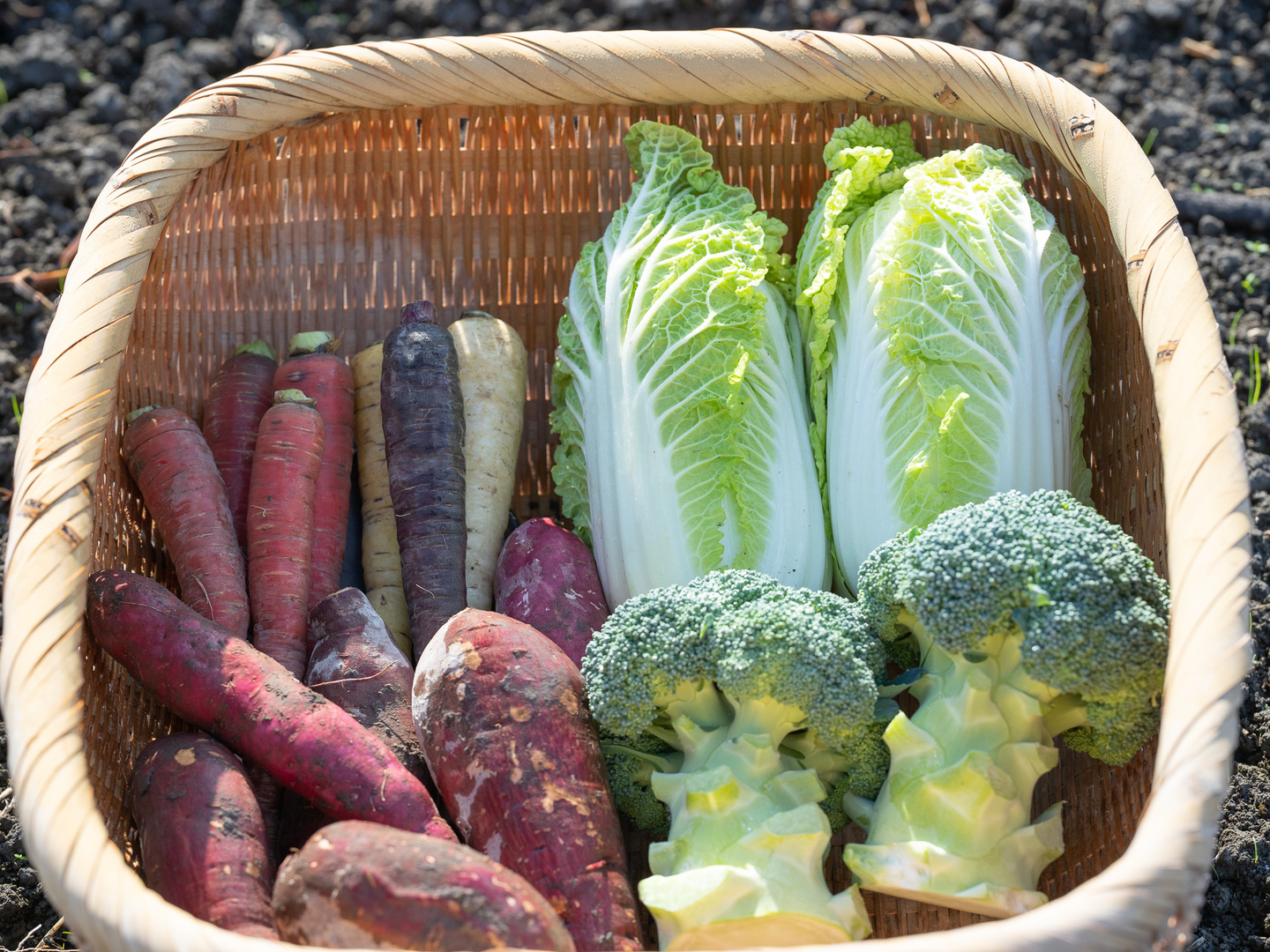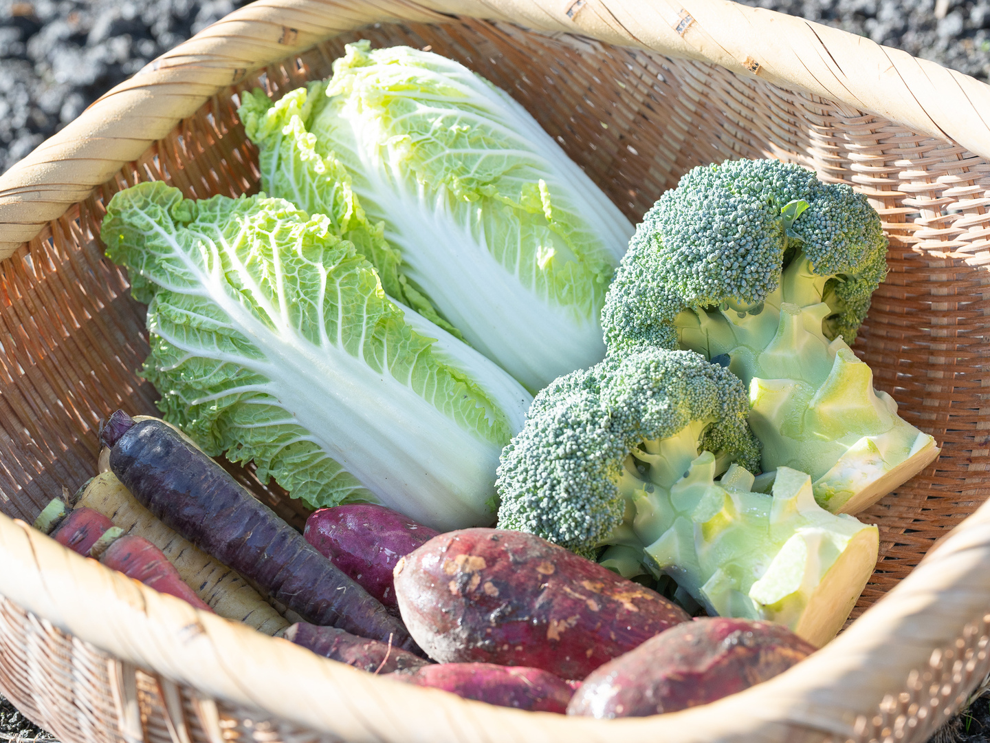 常温乾燥を防ぐ状さつまいも30日人参6日ブロッコリー、ベビー白菜3日