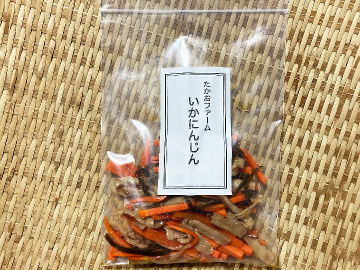 こちらはイカがたっぷり入った人参のお漬物、いかにんじんです。イカと昆布を贅沢に使った一品です。