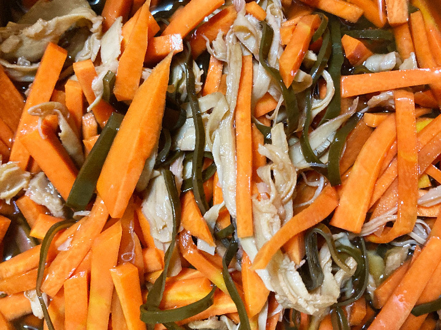 噛むほどに味深いイカとトロッとした昆布の旨味がポリポリの人参と絶妙に絡み合い後を引くうまさになっています。