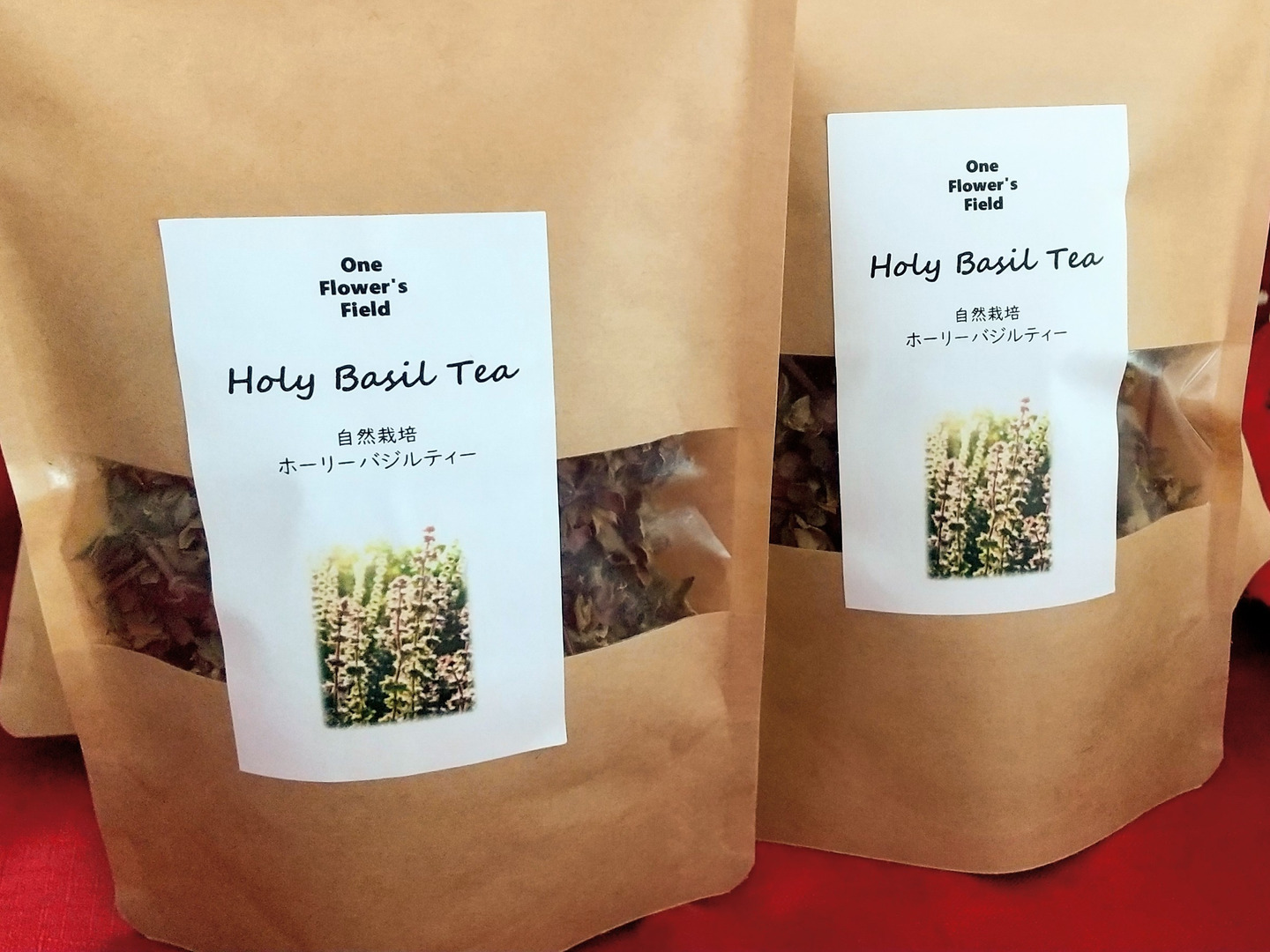 農薬、肥料不使用の自然栽培で育てたホーリーバジルを、じっくりと陰干しをして乾燥させたホーリーバジルのハーブティーです。