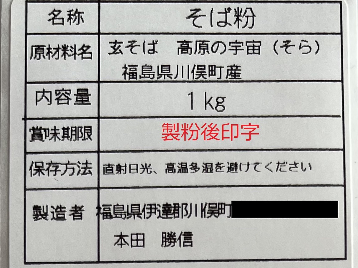山木屋在来そば【高原の宇宙】そば粉 2kg
