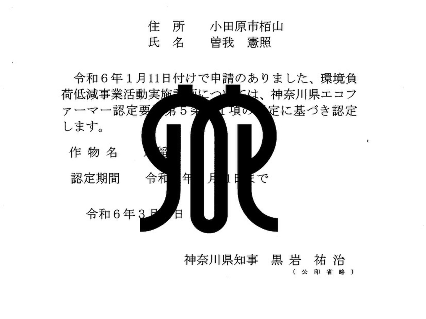 環境に優しいエコファーマーを実践しています(農薬:慣行の50%以下 窒