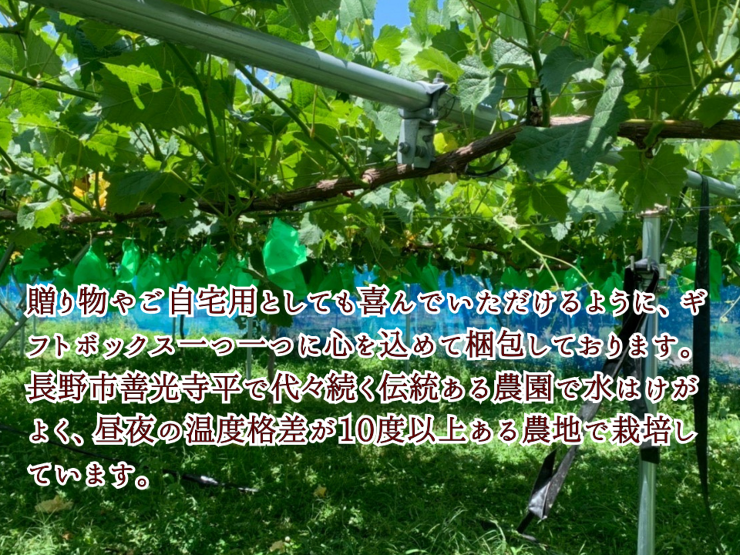 長野市善光寺平で80年続く伝統ある農園であり、自信をもってぶどうを栽培しております。