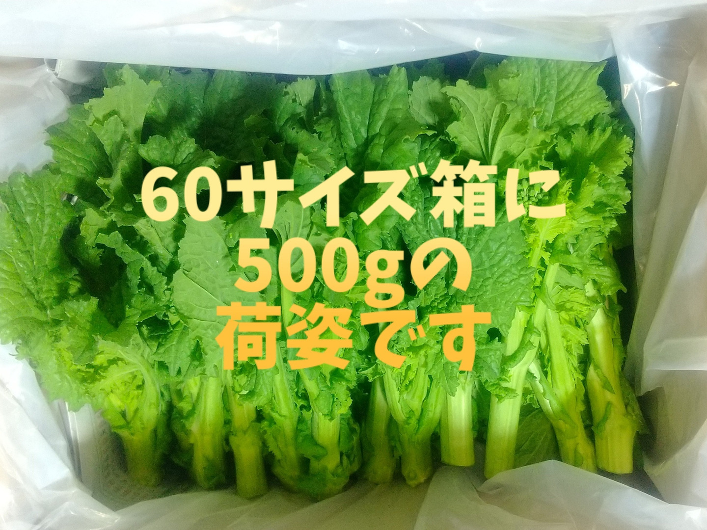 60サイズダンボール箱に、菜花500g程度を新聞紙とビニール袋で包んでお届けいたします。
