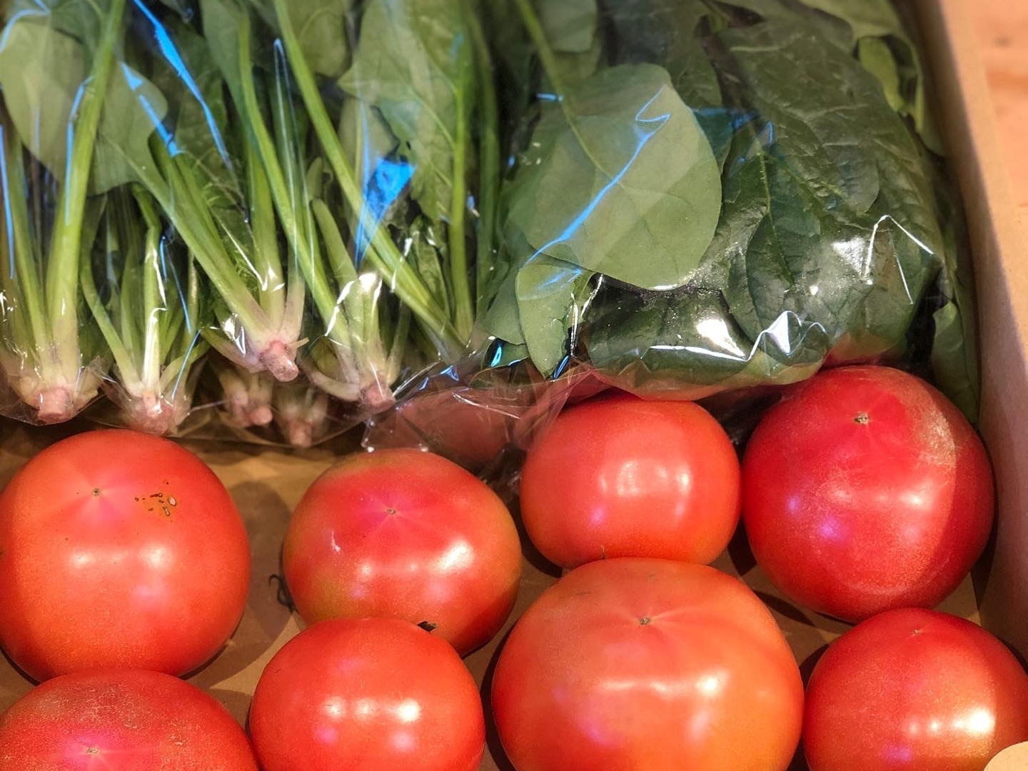 冬野菜の定番ほうれん草と完熟桃太郎トマトをセットでお届けします。