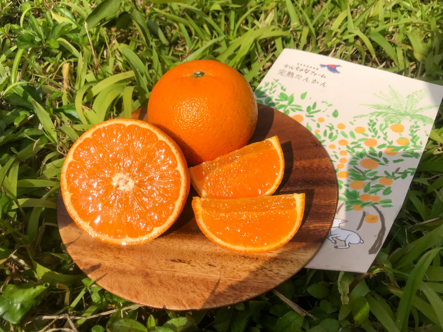 完熟したタンカンは、濃厚な甘味と程よい酸味があり、懐かしく爽やかな柑橘の香りとともに、旨みとコクのあるジューシーな果汁が口のなかに溢れます。