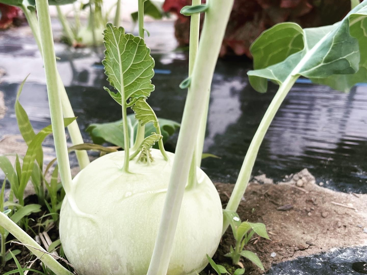 今回お届けする〈コールラビ〉とは、ドイツ語でコール(キャベツ)+ラビ(かぶ)という意味を持つ、キャベツの仲間です。