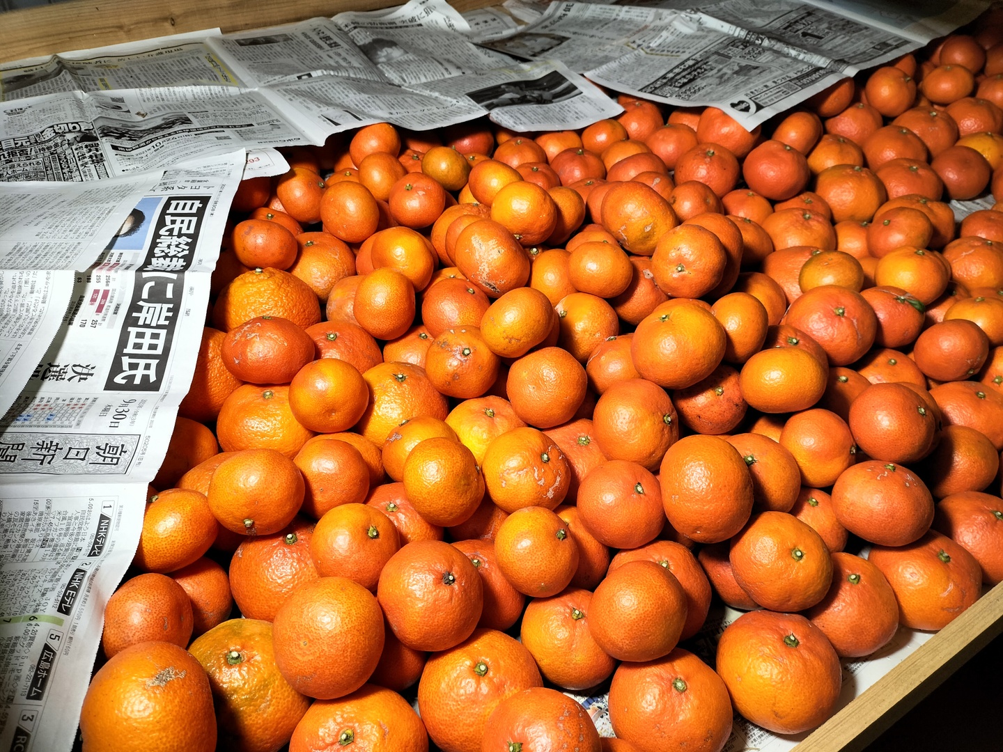 箱の底に新聞紙を丸めてしいてから、みかんを入れると日持ちがします。