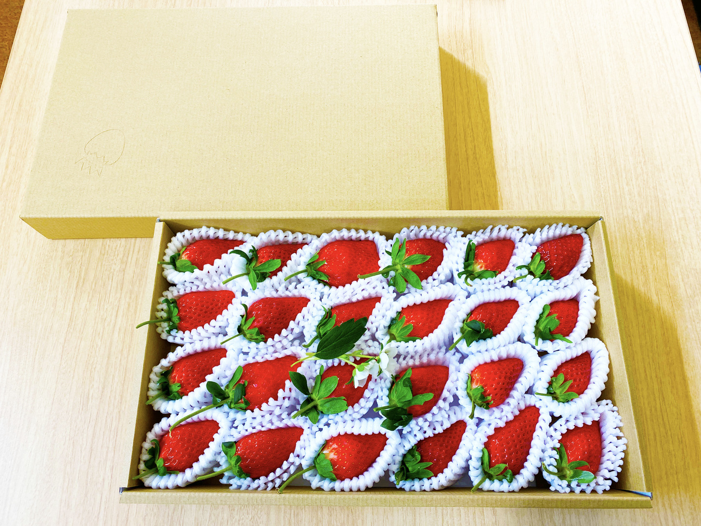 完熟のイチゴのみを早朝に収穫後、すぐに選別し箱詰め、当日中に発送いたします。