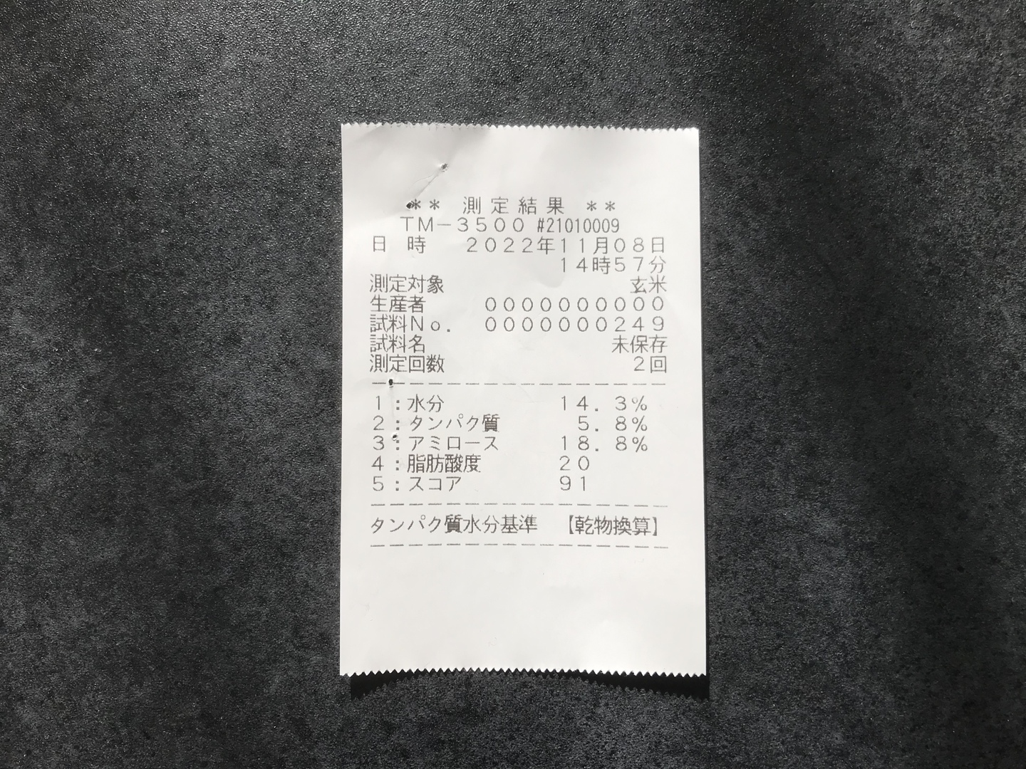 令和4年産の食味値は91点でした。(静岡製機株式会社 TM-3500使用)