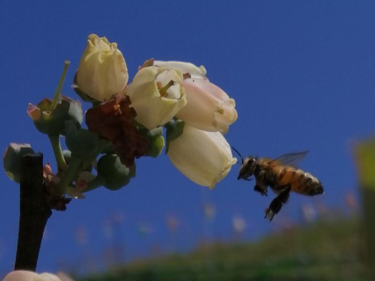 養蜂業とともに滝桜湖つみとりブルーベリー園を営んでおります。園内には約2,500本のブルーベリーを栽培しています。例年5月上旬、ブルーベリーは小さな花を咲かせますが、そのブルーベリーの花々の蜜を集めた希少なハチミツになります。フルーティーな香りと味わい、しっかりとした質感のハチミツです。