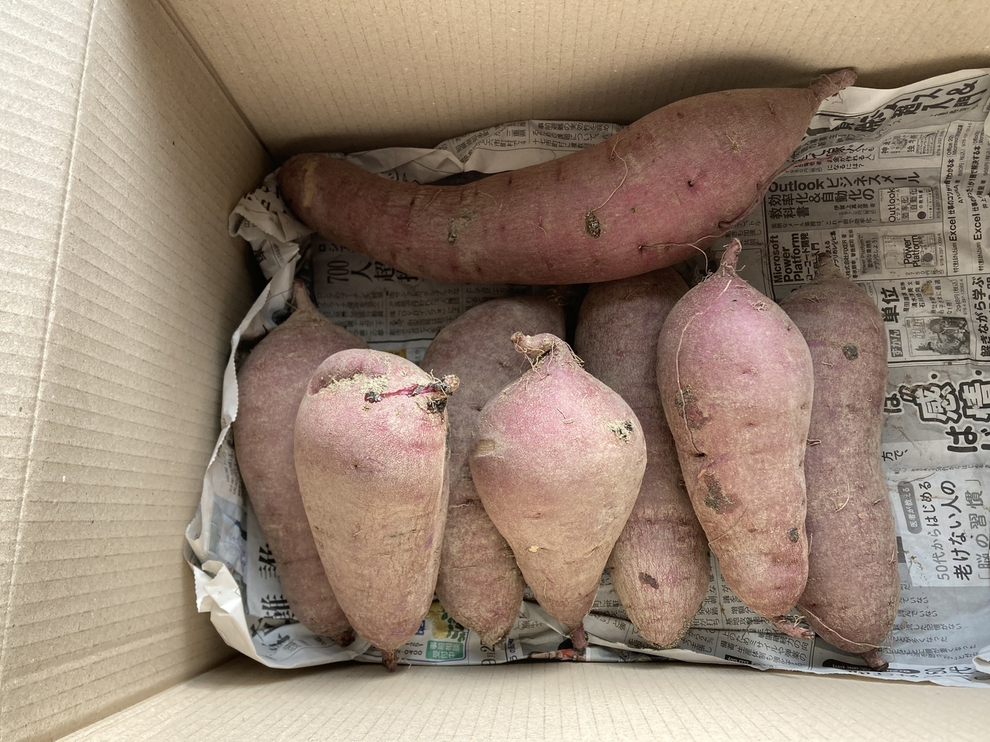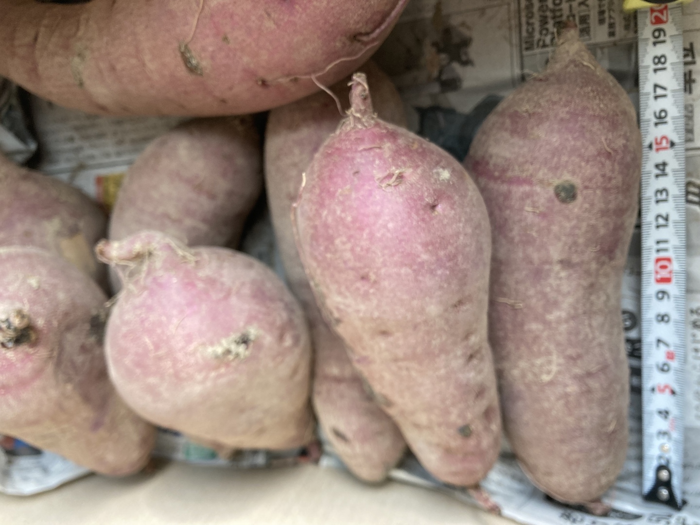 商品は写真のもので15cmくらいのオイモ7本と20cm以上のオイモ1本で合計8本になります。