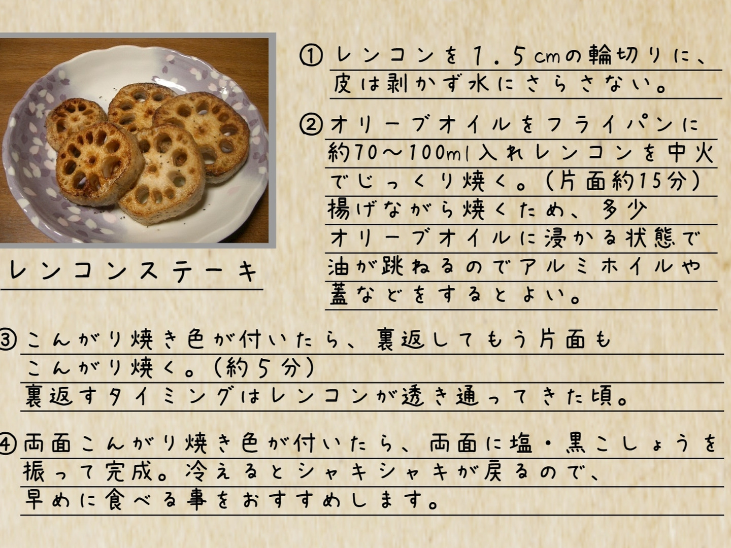 『きんぴら』や『素揚げ』など、『れんこんステーキ』が特におすすめのレシピです。