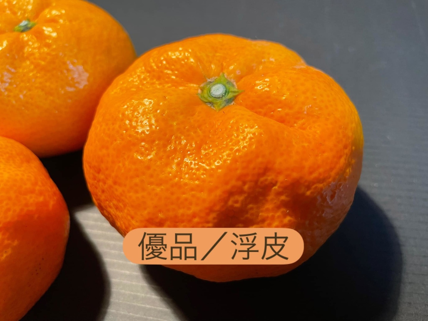 良品 = 贈答品用の出荷前に行なった最終選別で落としたみかんです。少しキズと浮皮が見られます。中身の美味しさは優秀品と同じですので、ご家庭用に最適だと思います。ほとんどが風に吹かれてできる擦り傷のものです。