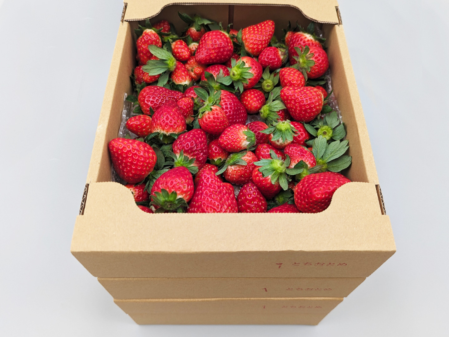 不揃いイチゴを1箱790g以上でバラ詰めしています。