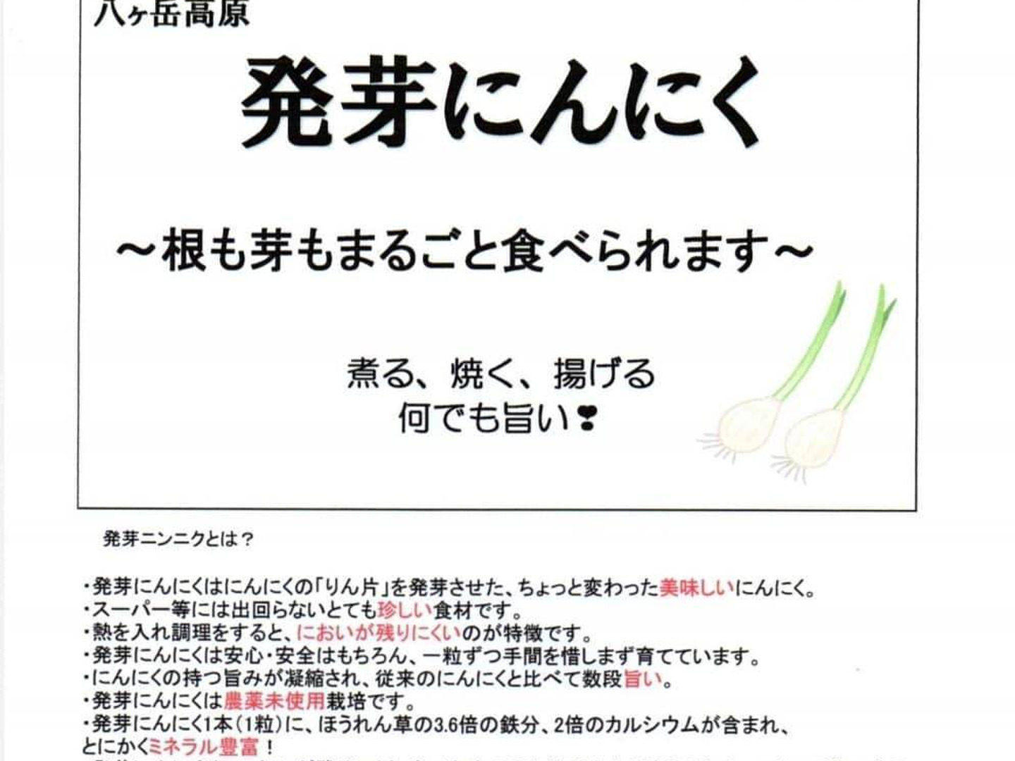 信州八ヶ岳高原のミネラルたっぷりの伏流水で育てた発芽にんにく(にんにくスプラウト)です。