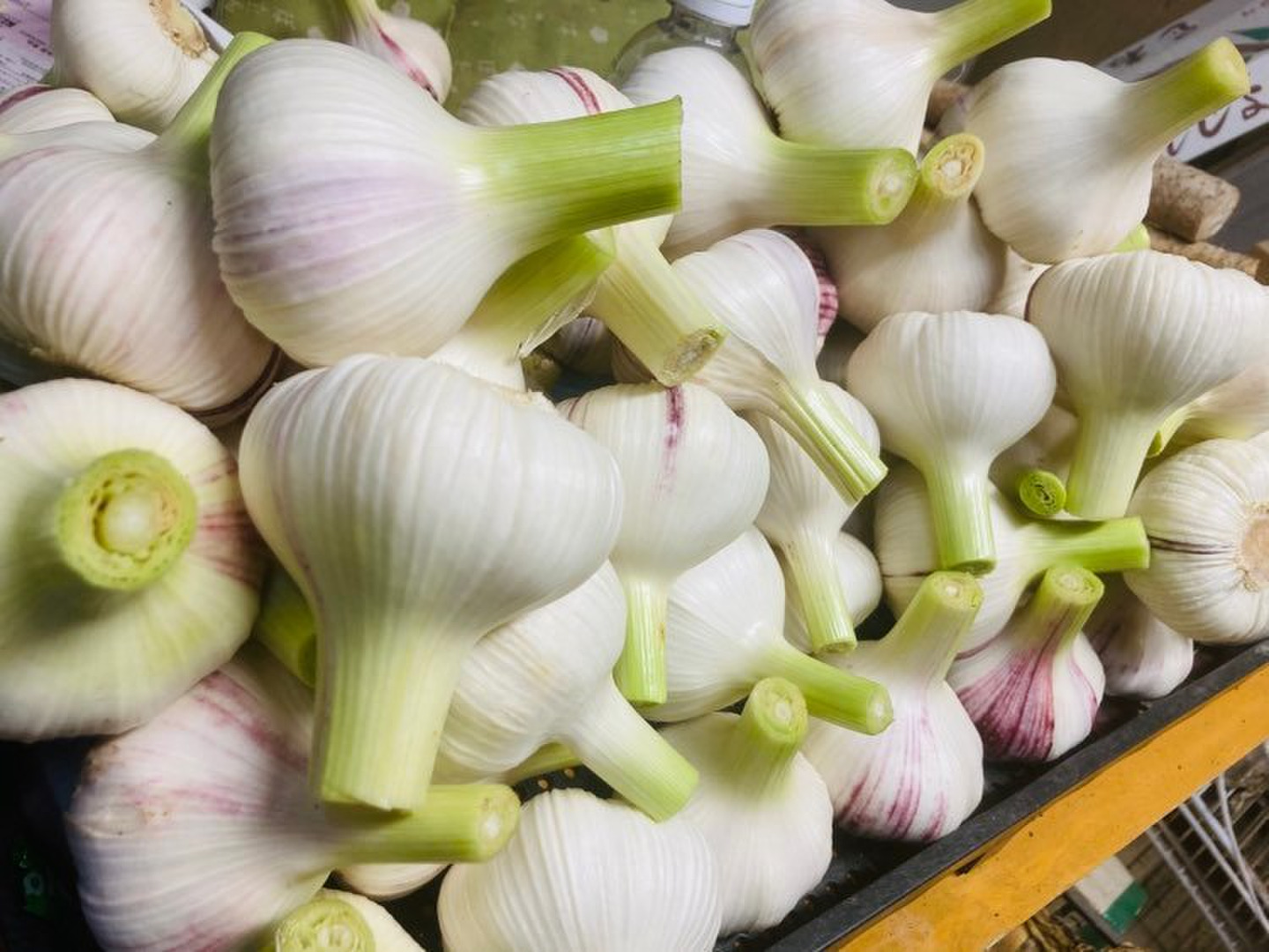 上海早生のにんにくの甘みがあってマイルドです。採れたての生にんにくは水分が多いので、とってもみずみずしいです。