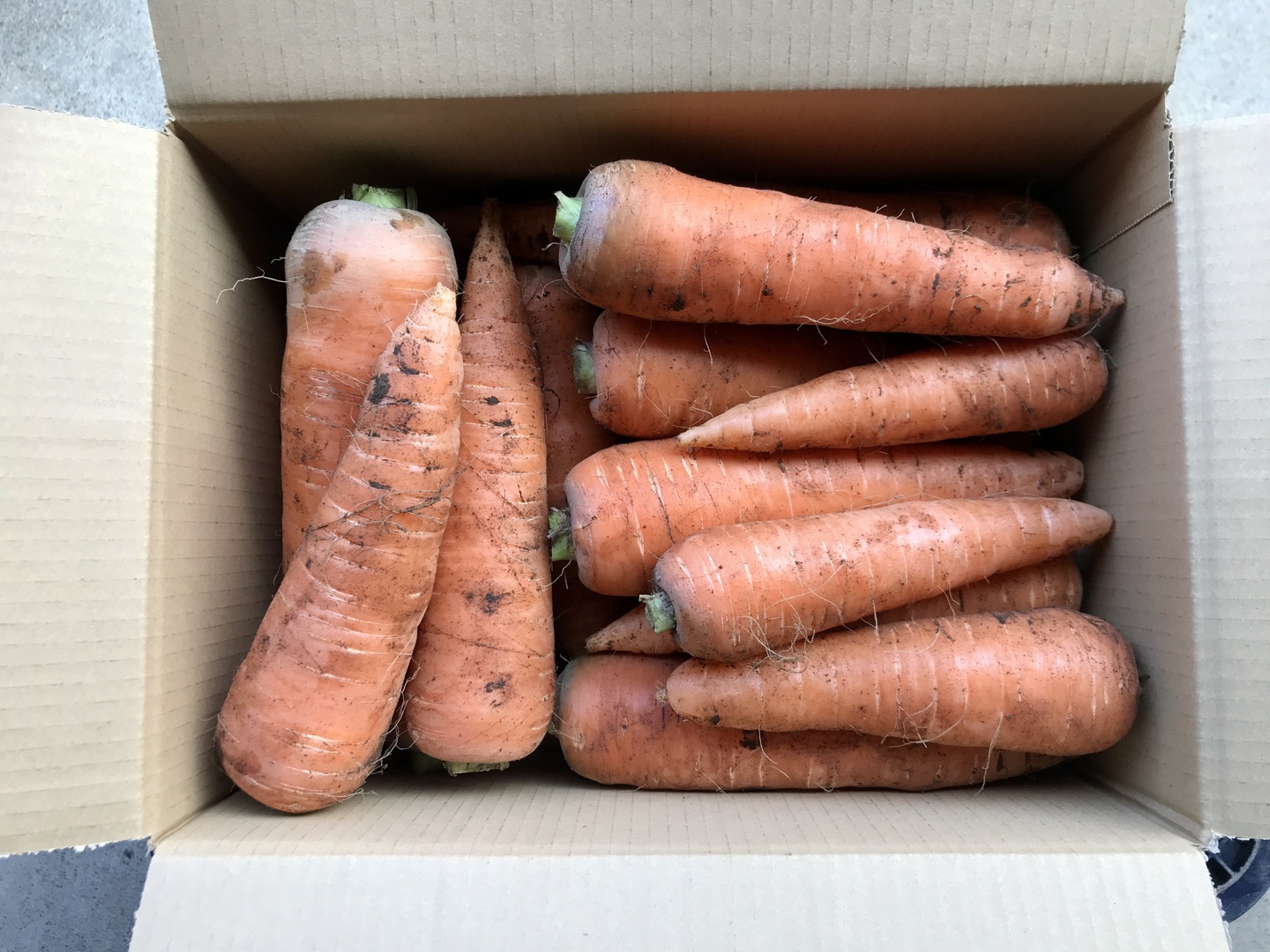 鹿児島産の人参注文を受けてから、収穫日に収穫した箱込み5キロ前後を畑の空気も収穫しながらAB品大中小混合箱詰めして、当日発送します^_^
